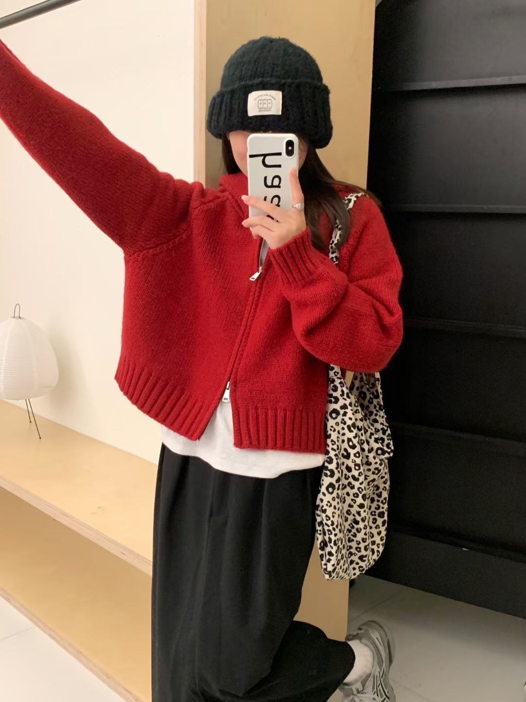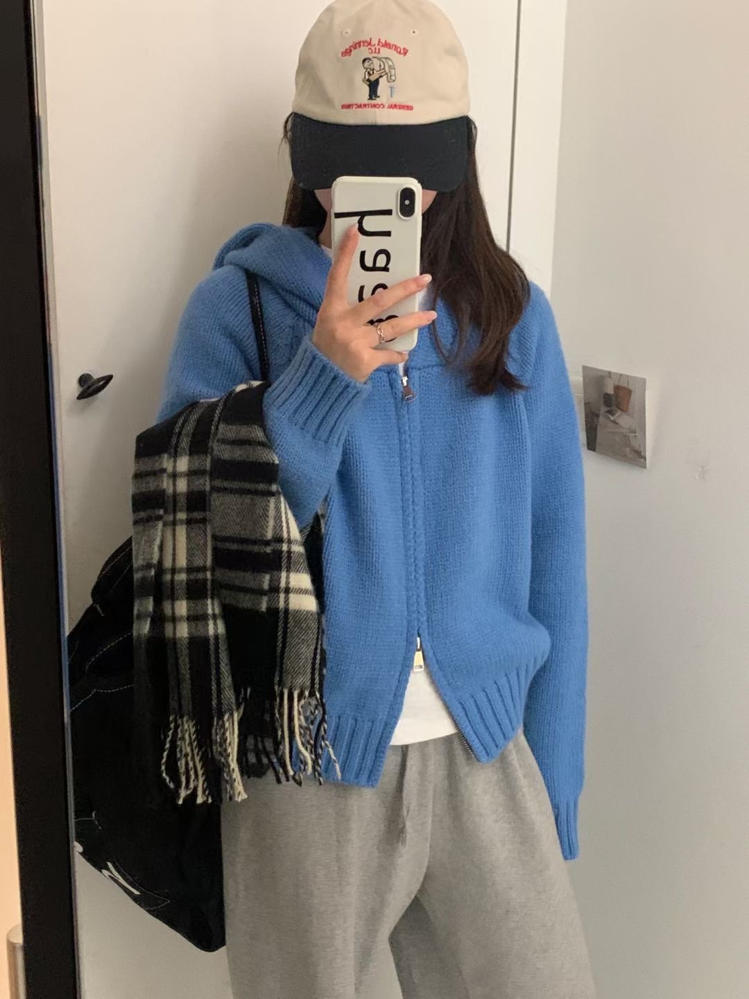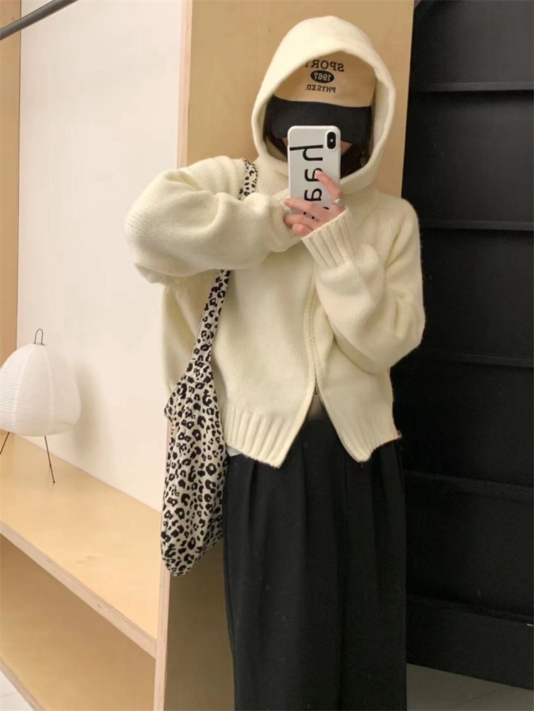 Главная страница > Женский стиль колледжа новый свободный короткий свитер на молнии с капюшоном женский 2024 осень и зима