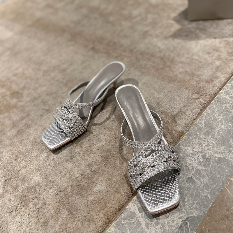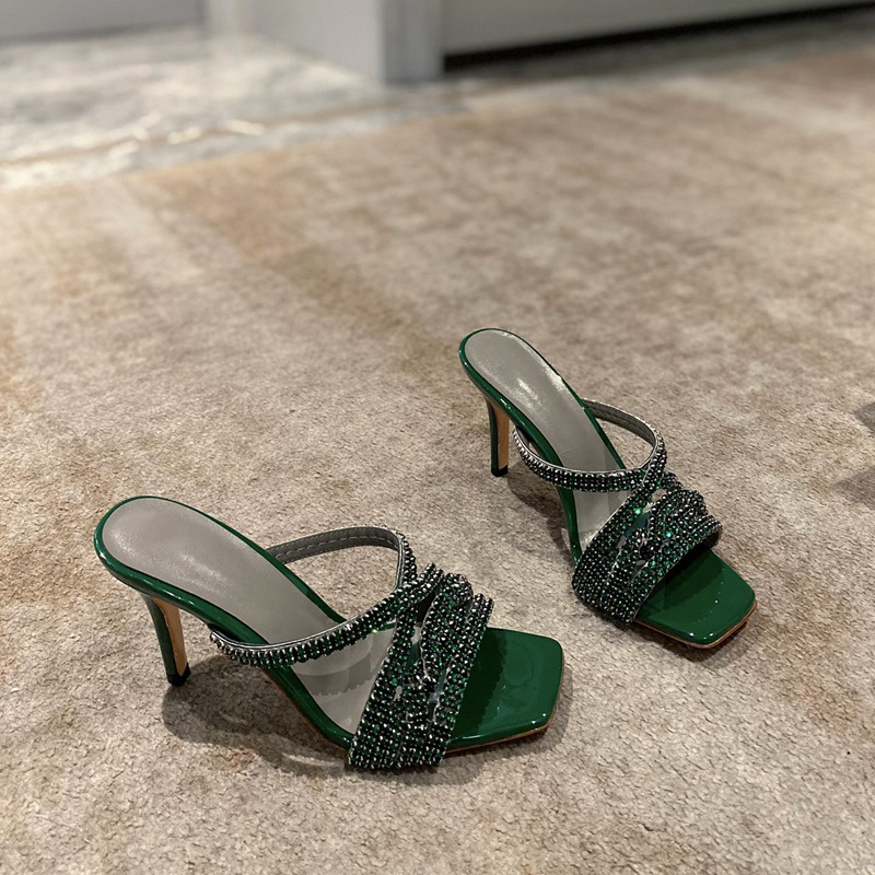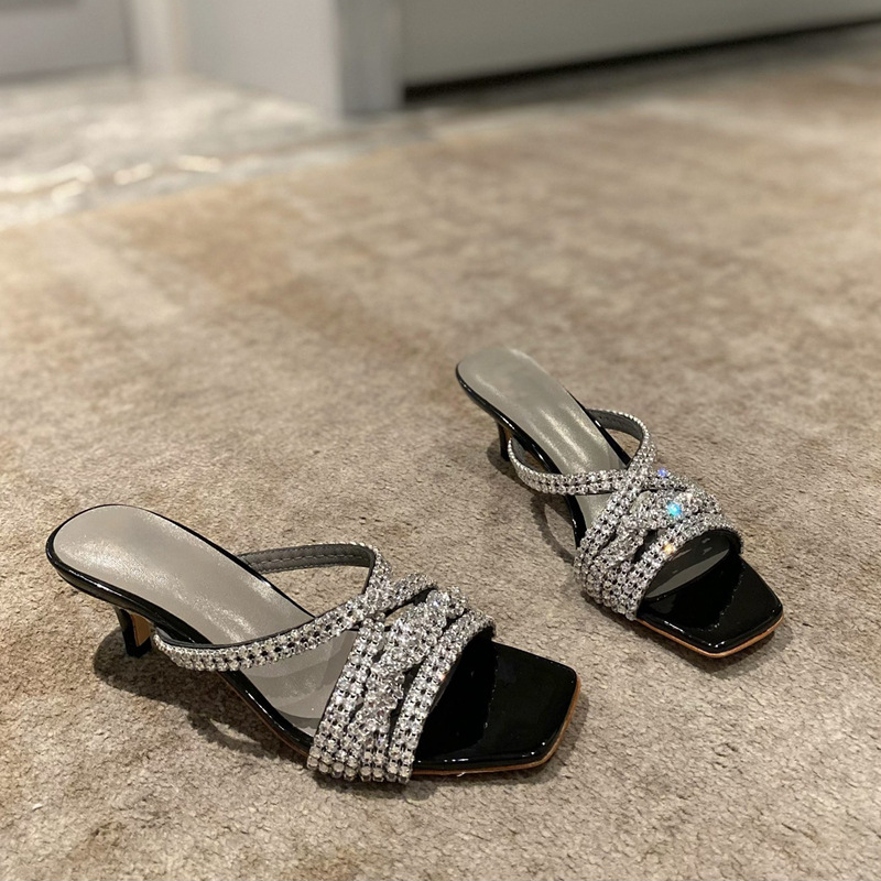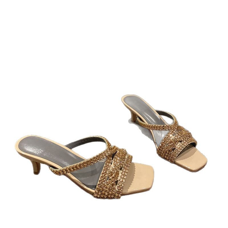 Главная страница > Женские босоножки-шлепанцы 2025 года, новые модели, на высоком каблуке-шпильке, открытый носок, золотистые стразы, лакированная кожа, на одной ремешке.
