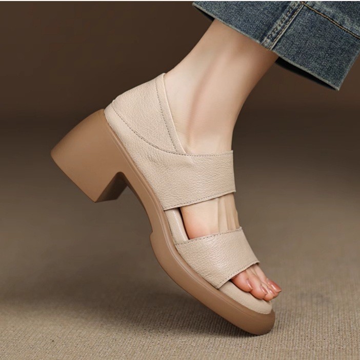 Главная страница > 2025 новый стиль 6 см супер мягкие сандалии из натуральной кожи с мягкой подошвой и рыбьим ртом для женщин, летняя верхняя одежда, римские туфли на высоком каблуке с двумя носками