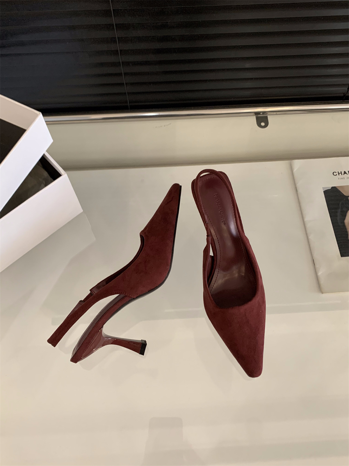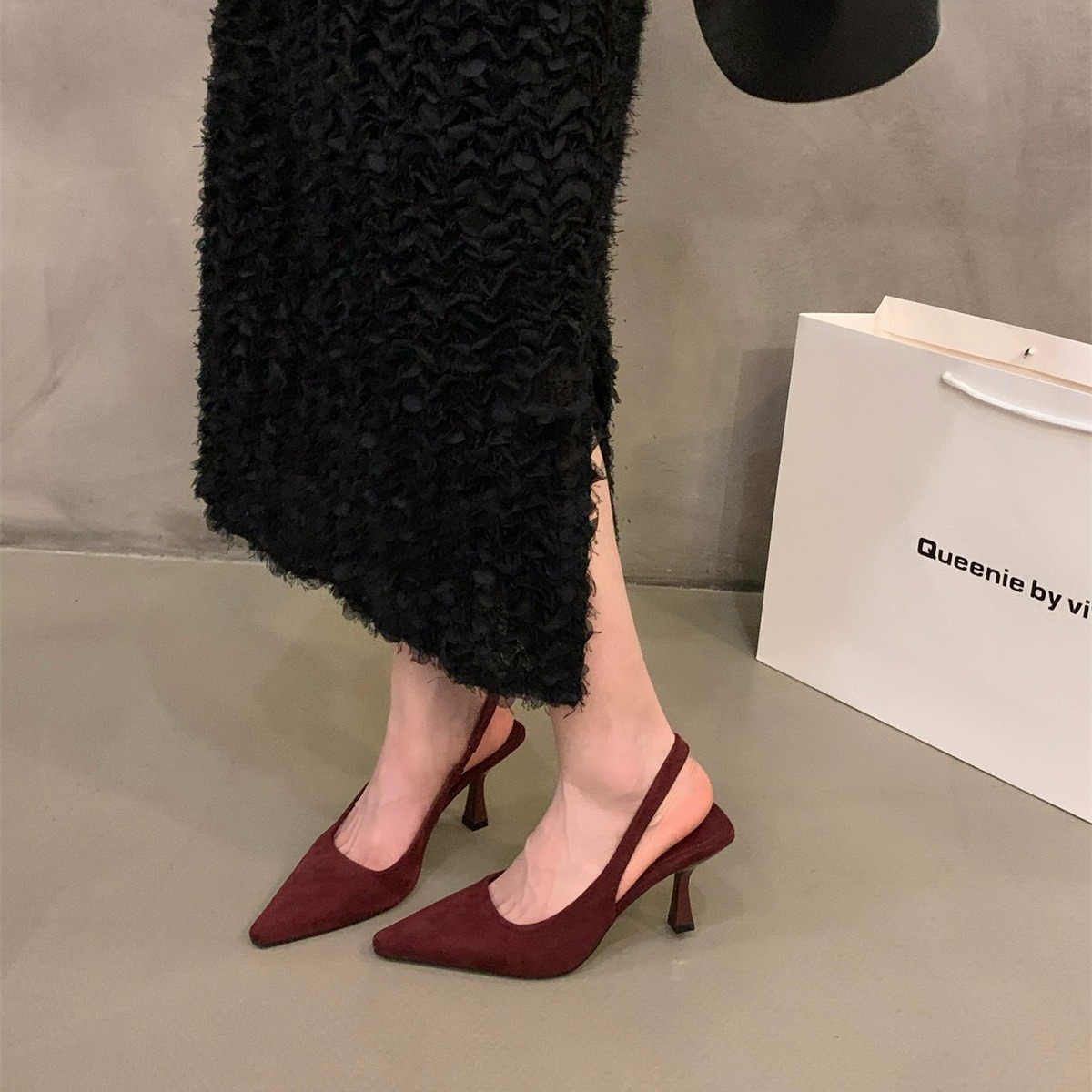Главная страница > Французские замшевые сандалии с черным носком, сказочные туфли 2025 весна-лето, элегантные остроносые красные туфли на плоской подошве