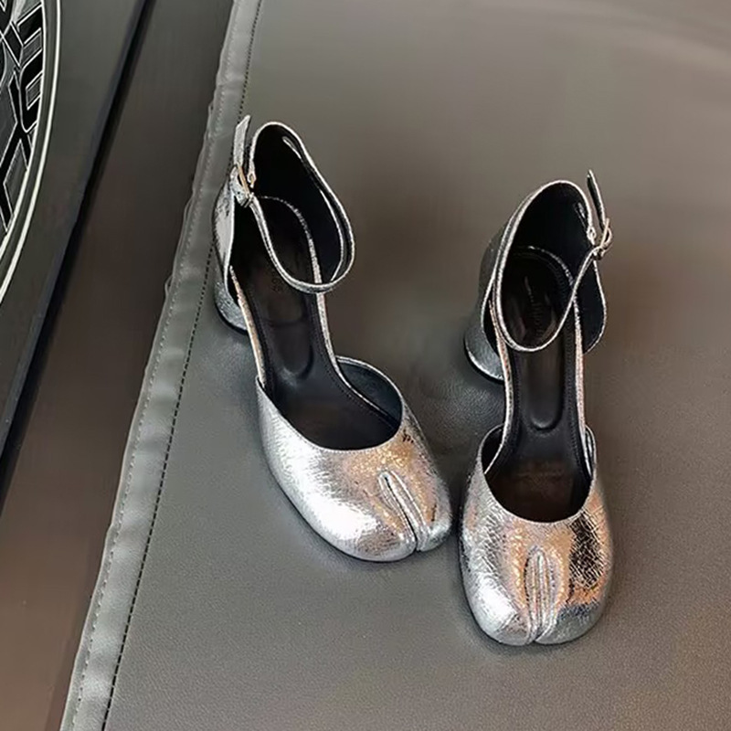 Главная страница > Женские туфли с ножками Mary Jen, французские серебряные с толстым каблуком, высокие каблуки, полые сандалии, одиночные туфли, высокие каблуки, женщины