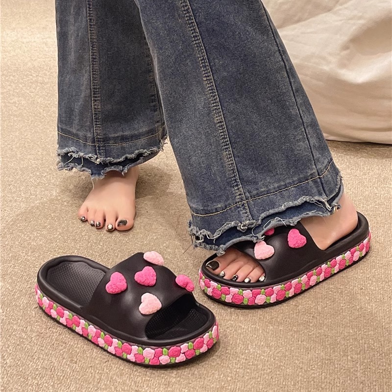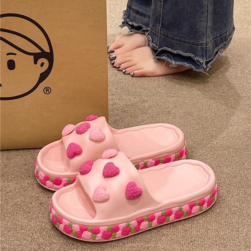 Главная страница > Симпатичные любящие цветы тапочки женская летняя мода носить на улице 2025 новый интерьер толстые подошвы противоскользящие холодные тапочки