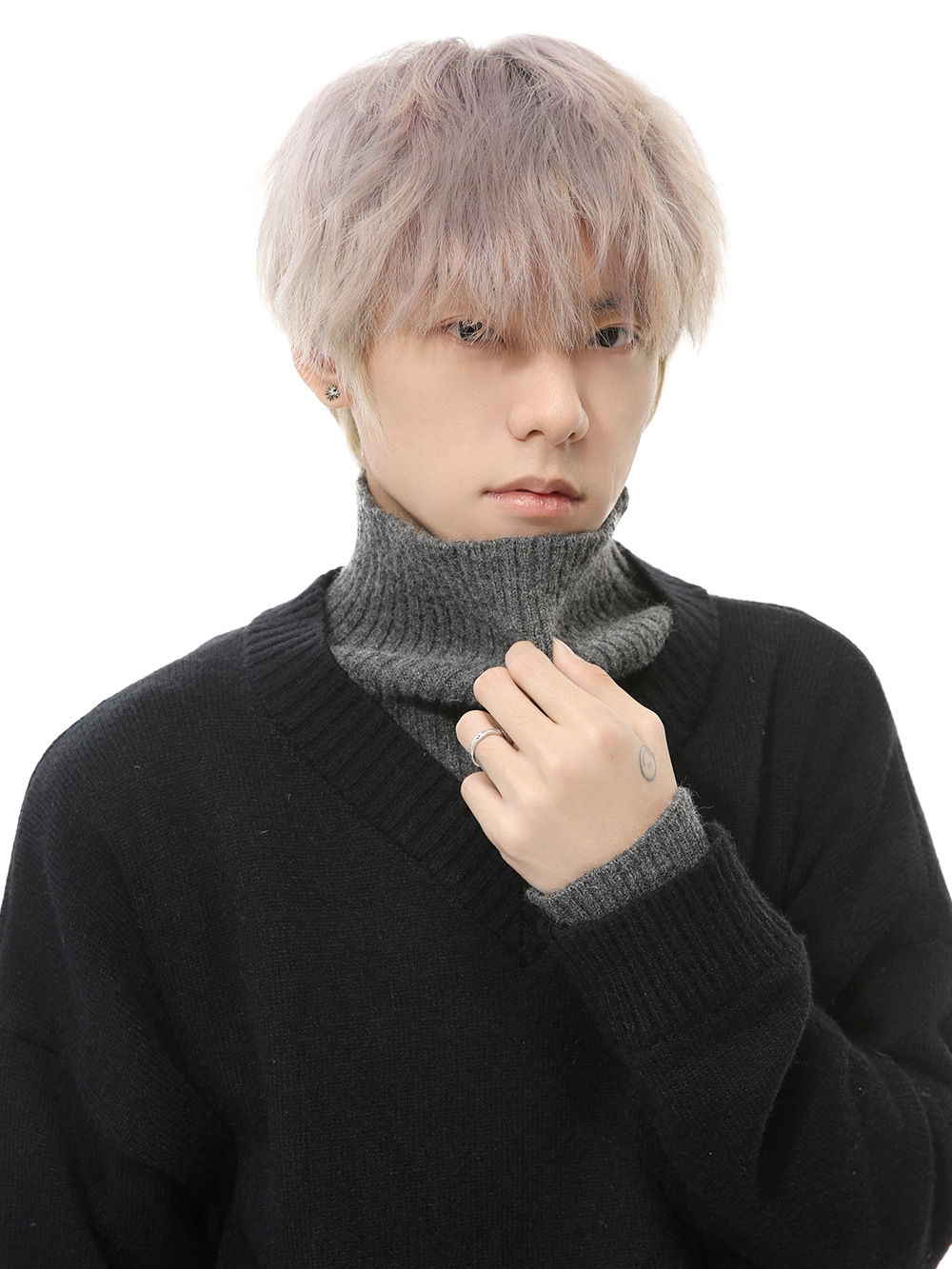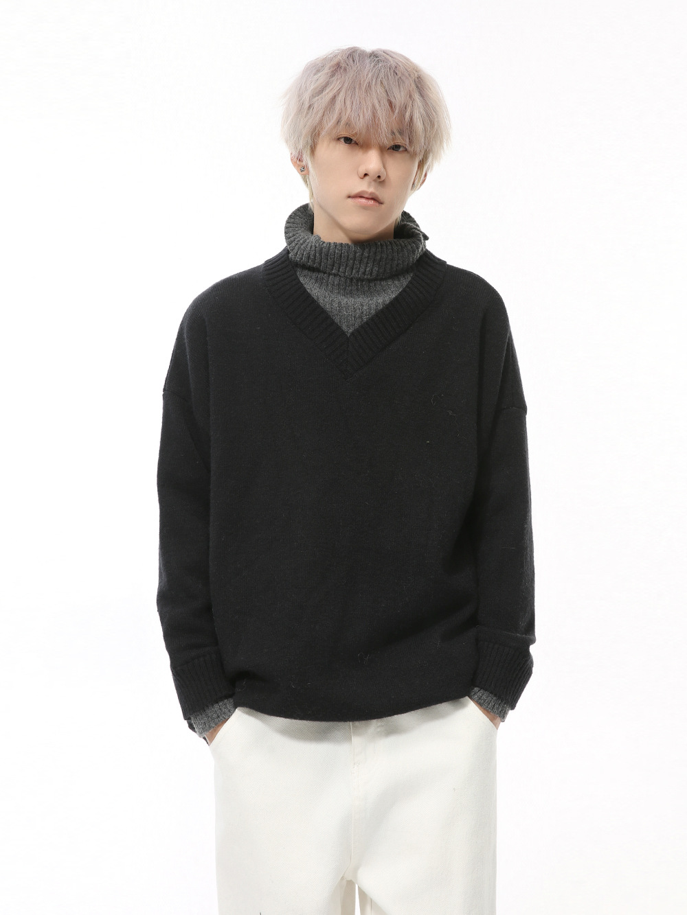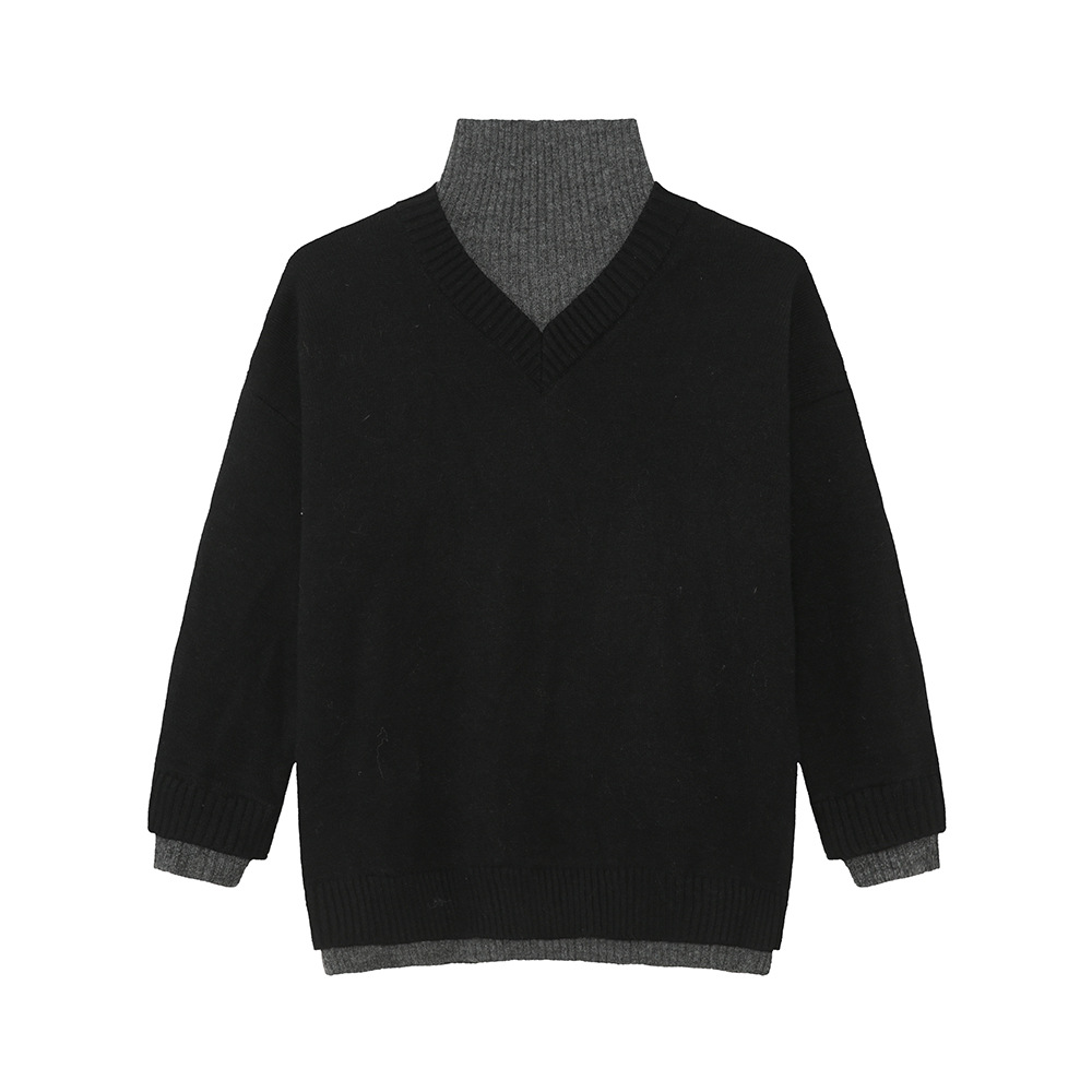 Главная страница > MTLCLOTHES Мужская одежда | Зимний новый сшитый поддельные два контрастных цвета с высоким воротником нишевые нишевые вязаные свитера с V-образным вырезом