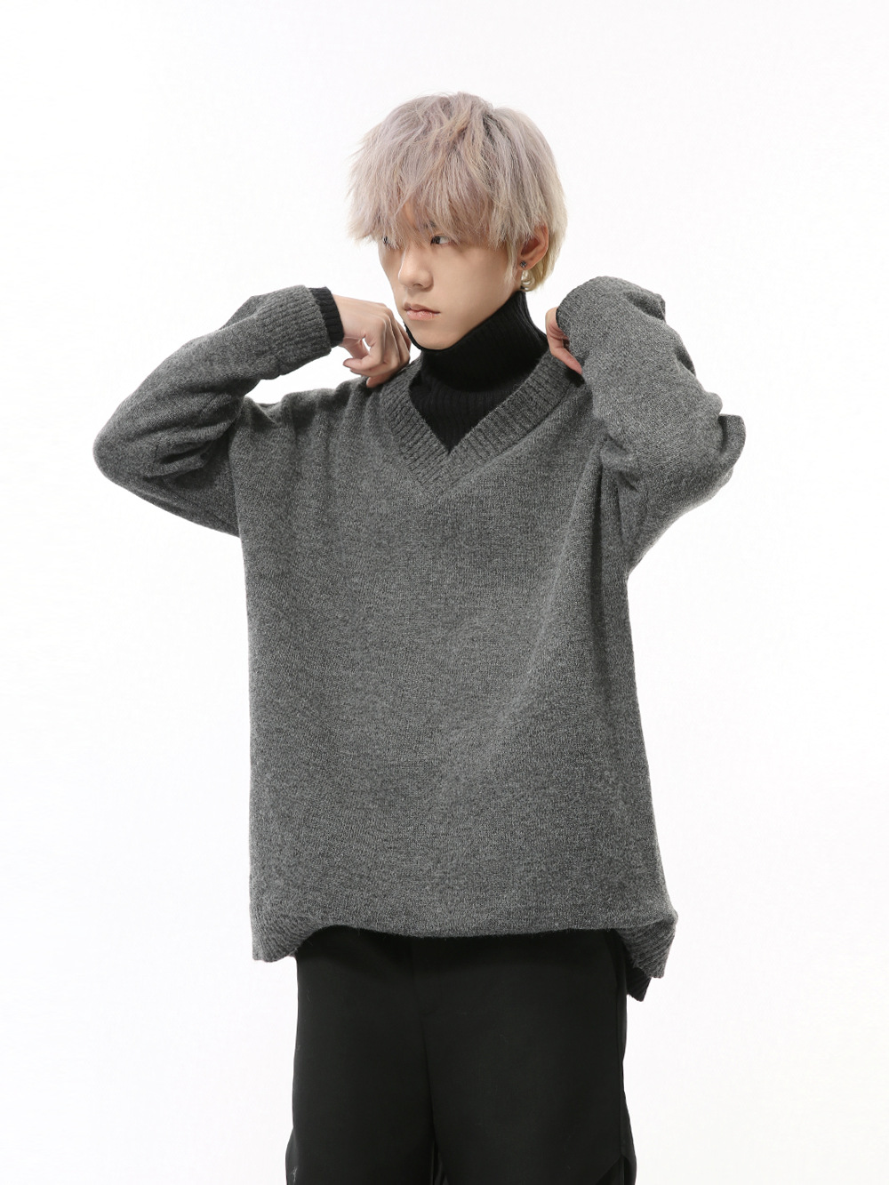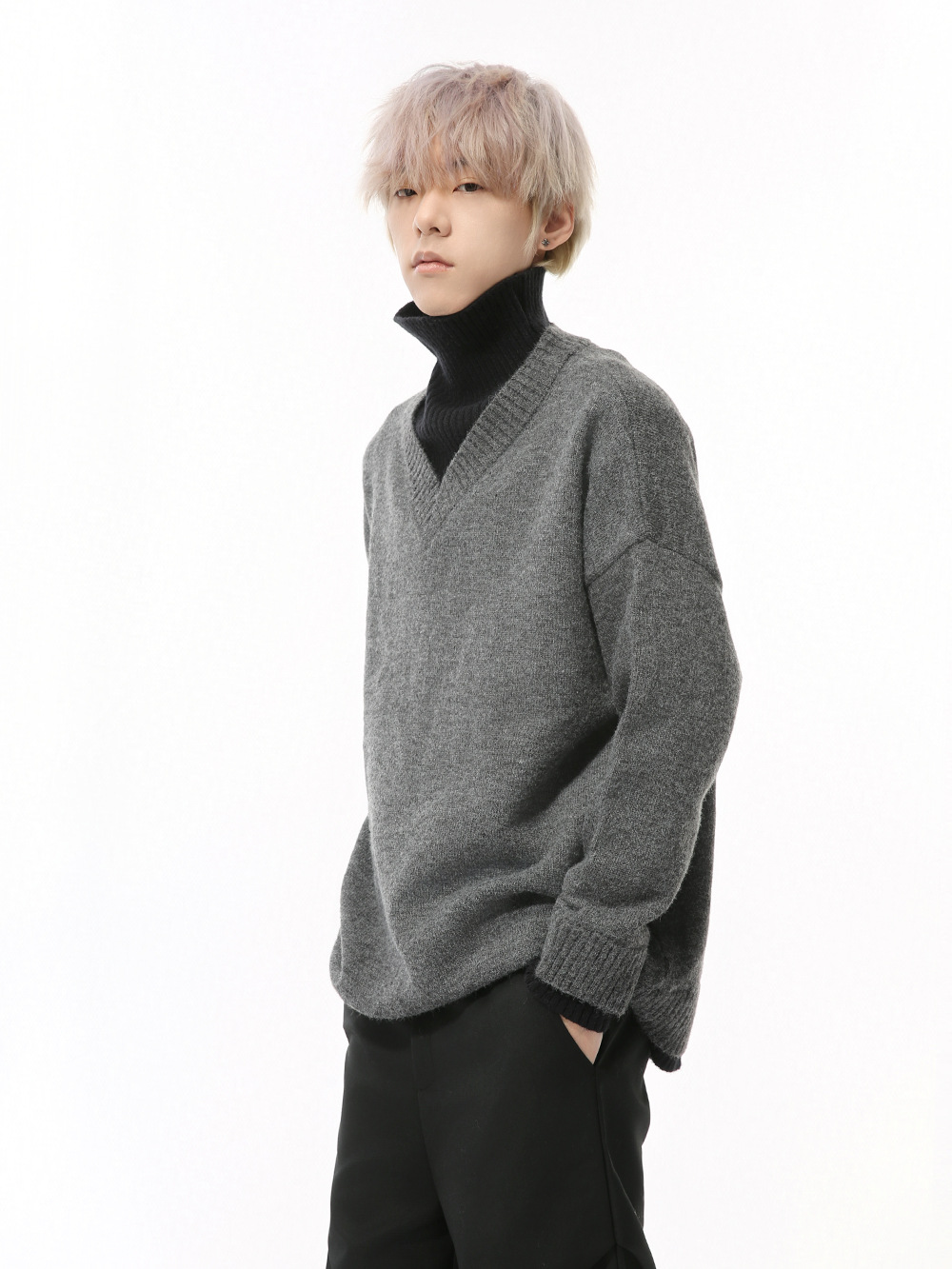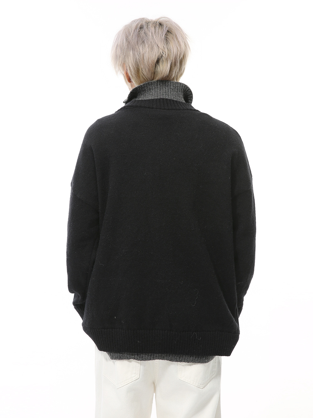 Главная страница > MTLCLOTHES Мужская одежда | Зимний новый сшитый поддельные два контрастных цвета с высоким воротником нишевые нишевые вязаные свитера с V-образным вырезом