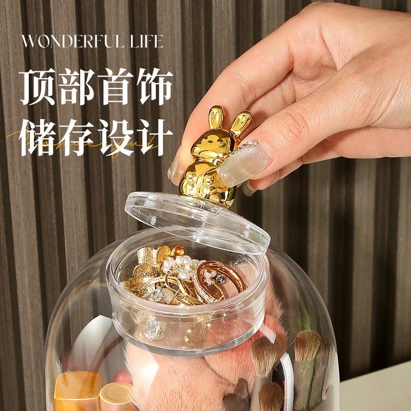 Главная страница > Прозрачная щетка для макияжа Стол вращающийся пыленепроницаемый туалетный столик для бровей ручка для хранения коробки высокого уровня