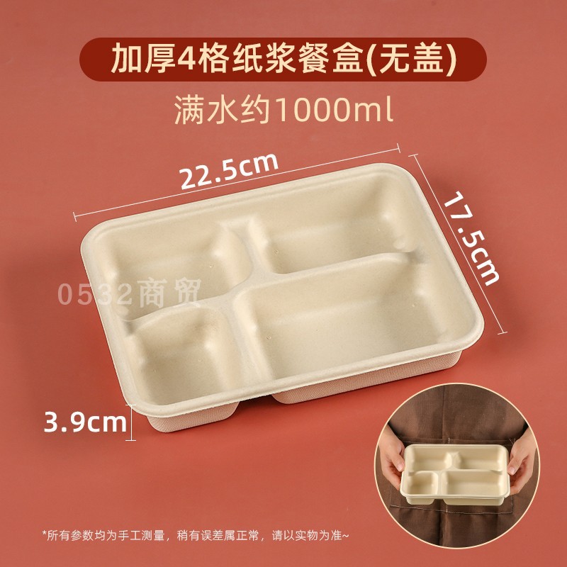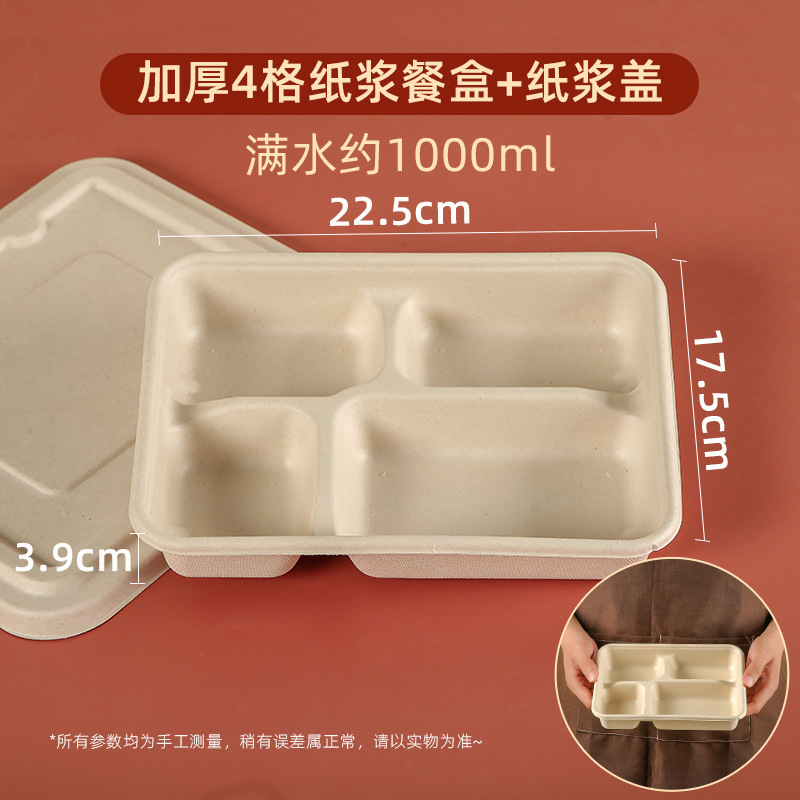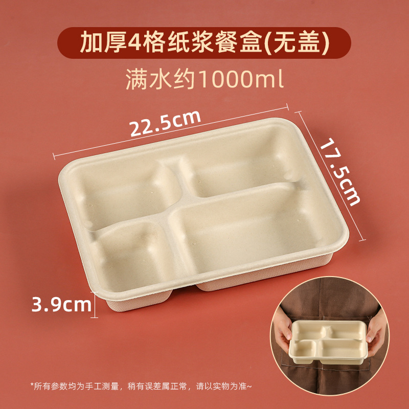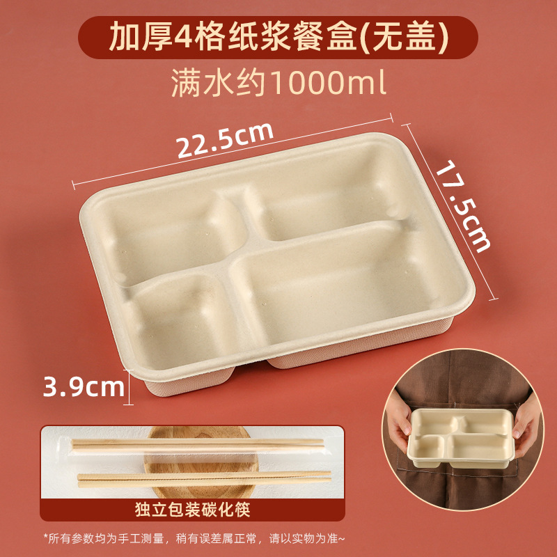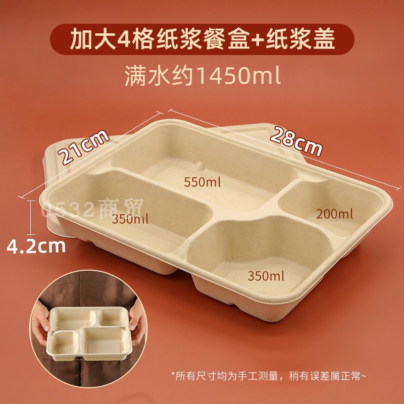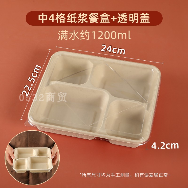 ☆★Средний утолщенный ланч-бокс с четырьмя отделениями + крышка из бумажной массы, 50 комплектов☆★