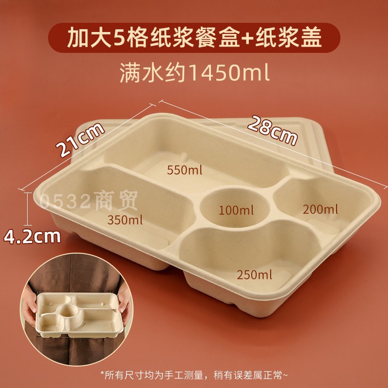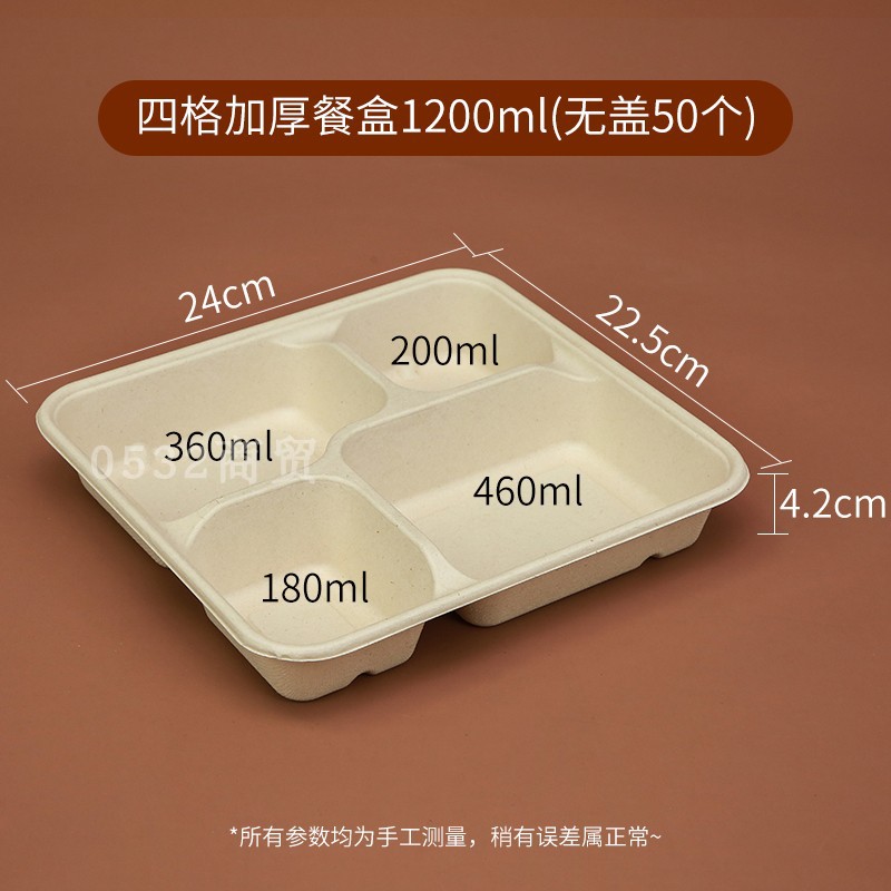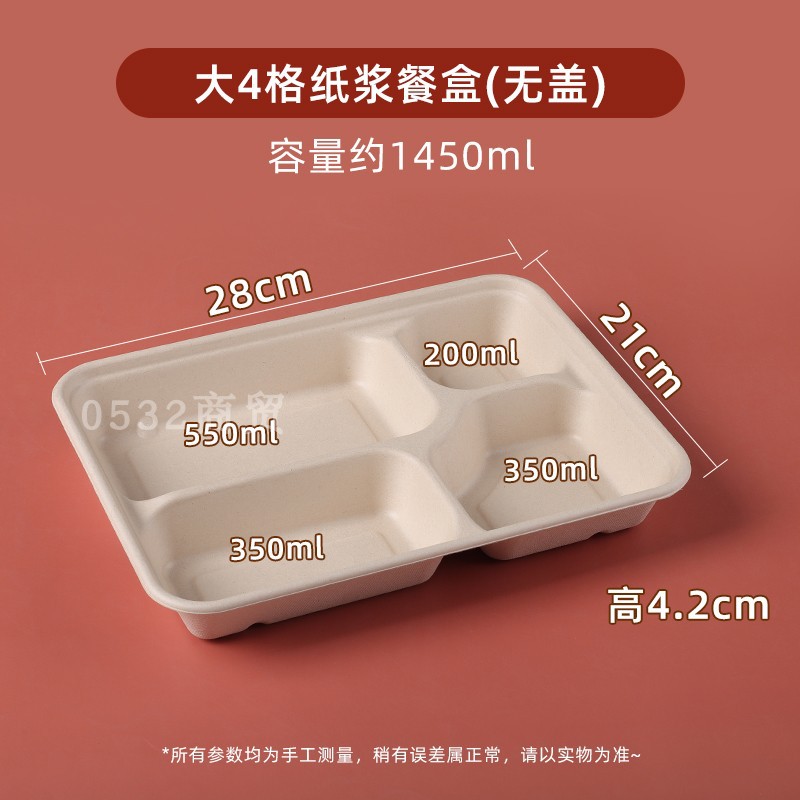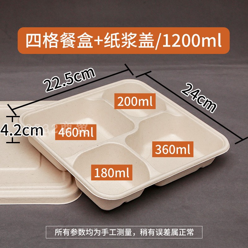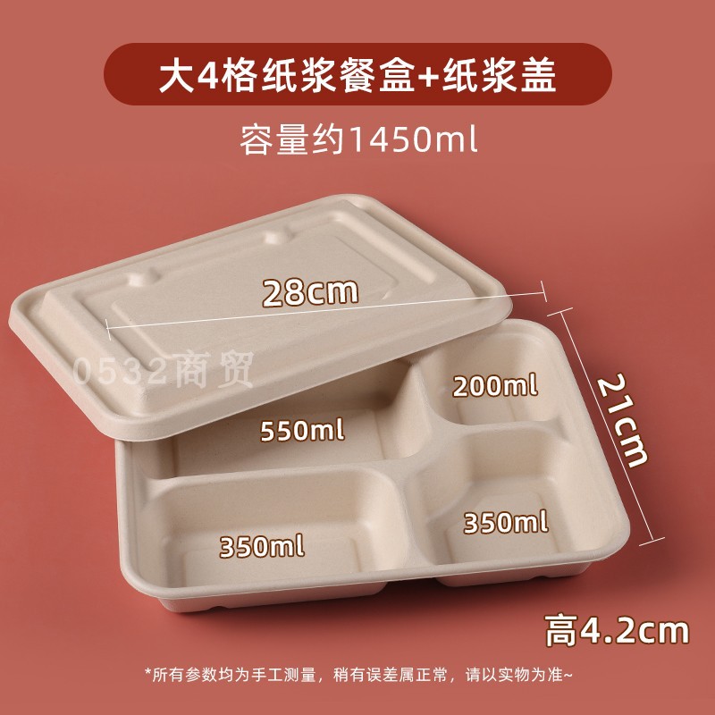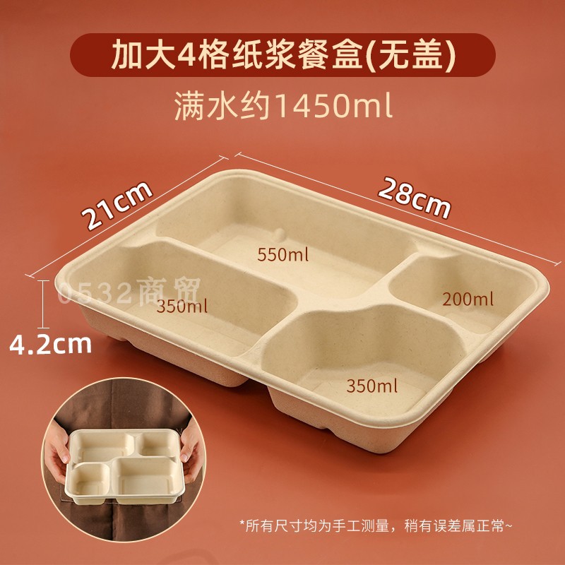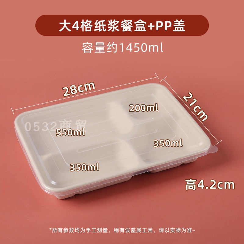 ☆★Средний утолщенный ланч-бокс с четырьмя отделениями + крышка из бумажной массы, 50 комплектов☆★