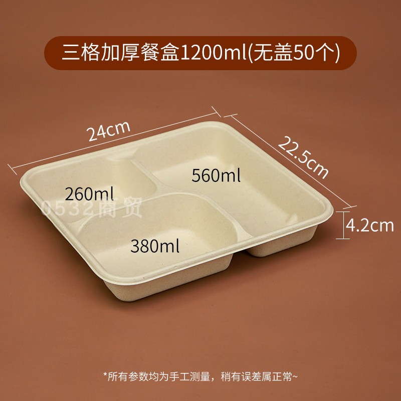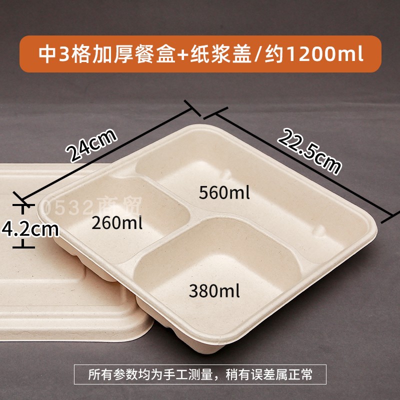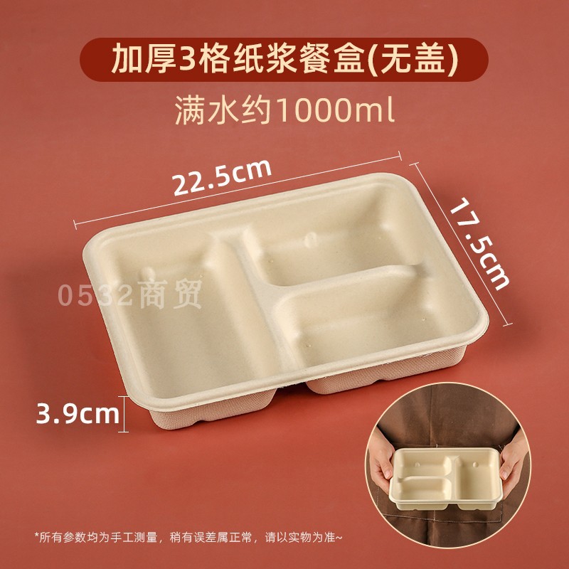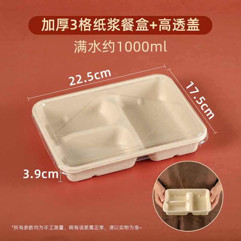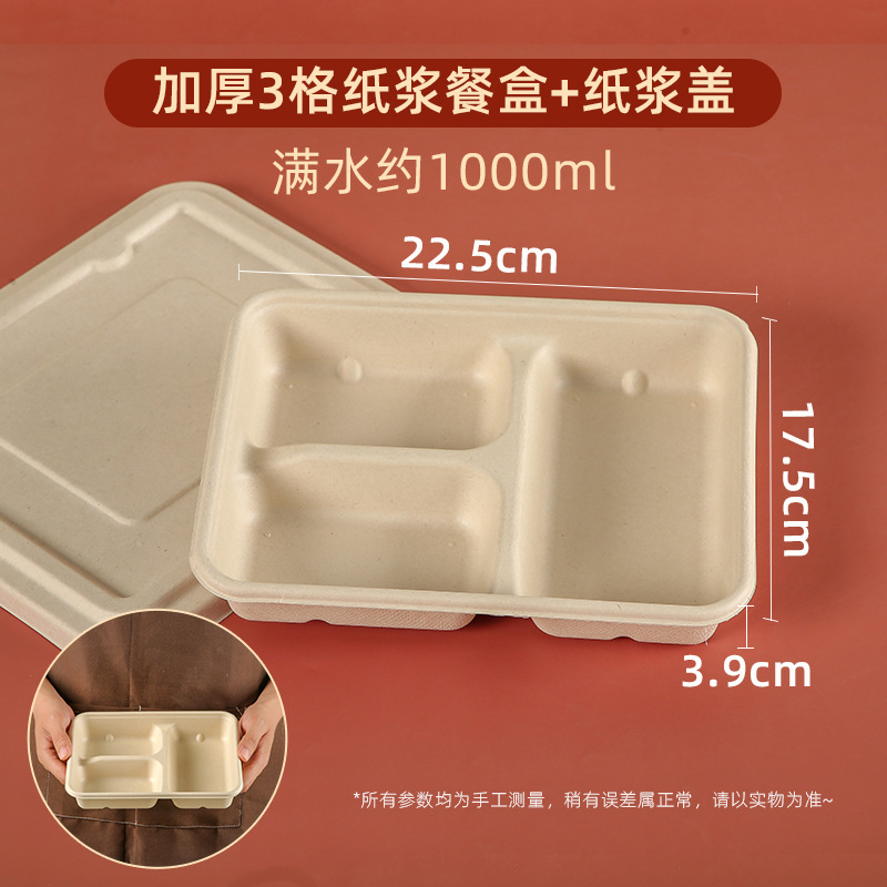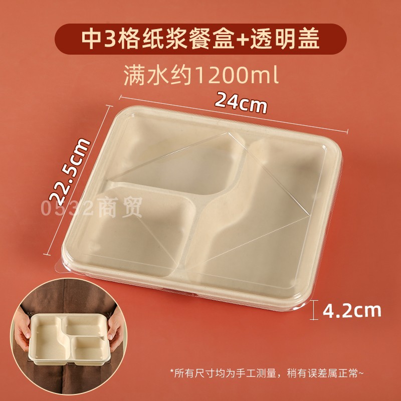 ☆★Средний утолщенный ланч-бокс с тремя отделениями + крышка из бумажной массы, 50 комплектов☆★