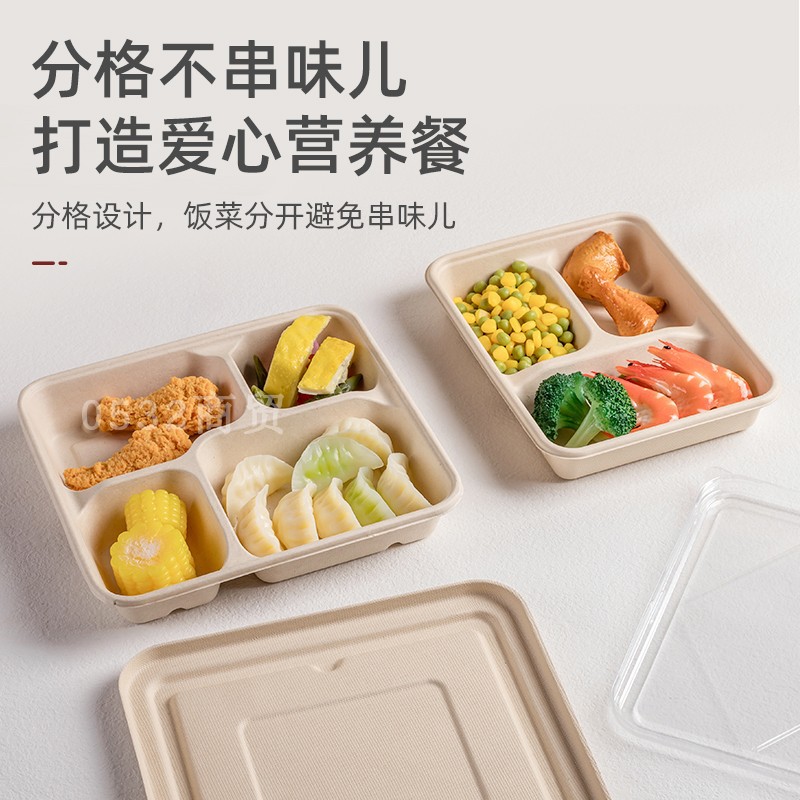 Главная страница > Дискретная коробка для бенто для еды на вынос R ^ одноразовая коробка для завтрака разлагаемая коробка для завтрака из четырех частей мякоти для фаст-фуда