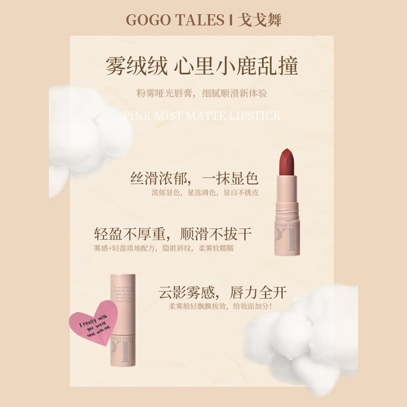GOGO TALES GOGO Танцевальная пудра Туман Губная помада Бархатный туман Матовая чистая белая Обычная губная помада для женщин