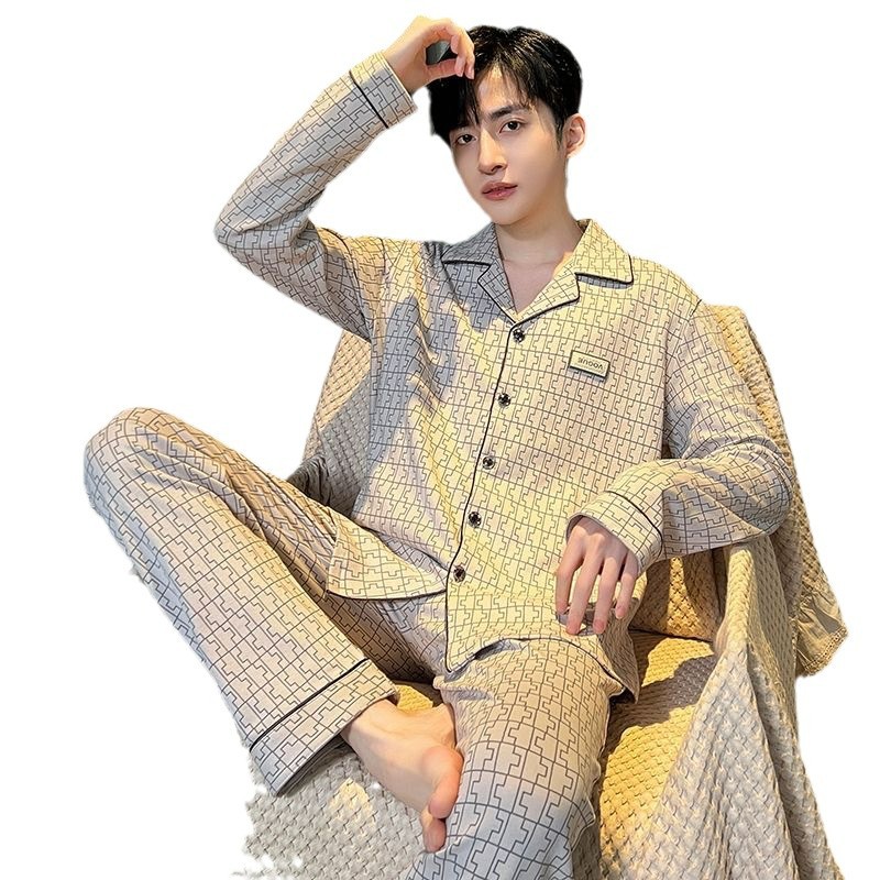Главная страница > Новые мужские пижамы для весны и осени, из чистого хлопка, с длинными рукавами, тонкие, в осенне-зимнем стиле, высококачественный комплект для дома.