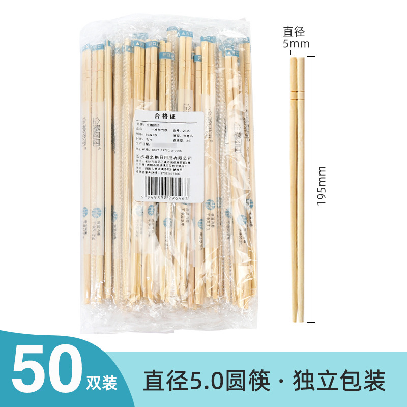 50 пар палочек для еды (0,5*19,5 см) — в индивидуальной упаковке.