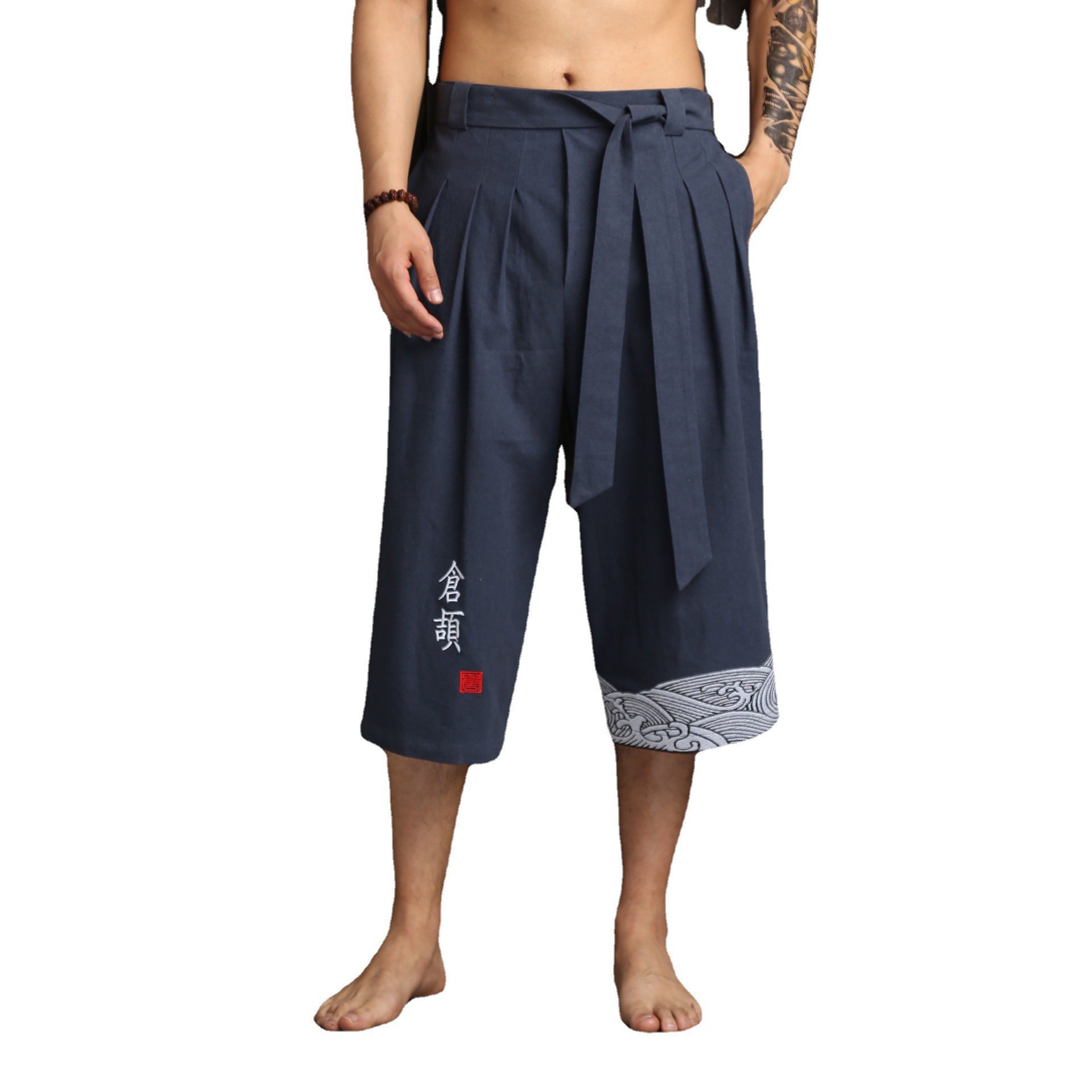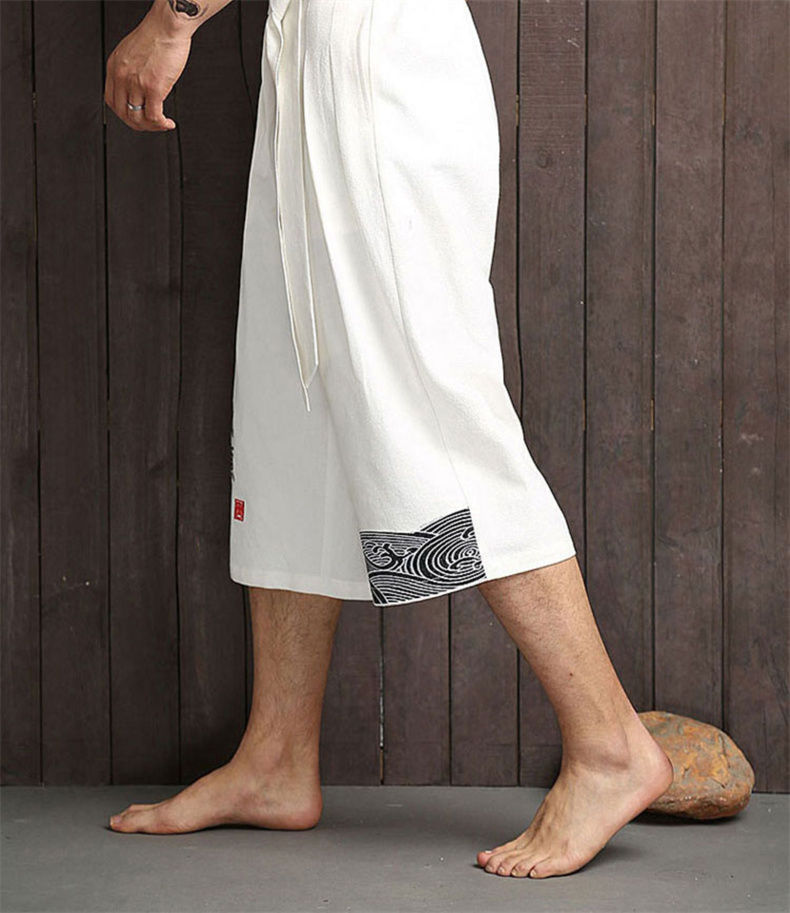 Главная страница > 2023 Новые Брюки-Капри в китайском стиле мужские свободные прямые летние широкие брюки антикварные повседневные брюки с вышивкой ханьфу для мужчин
