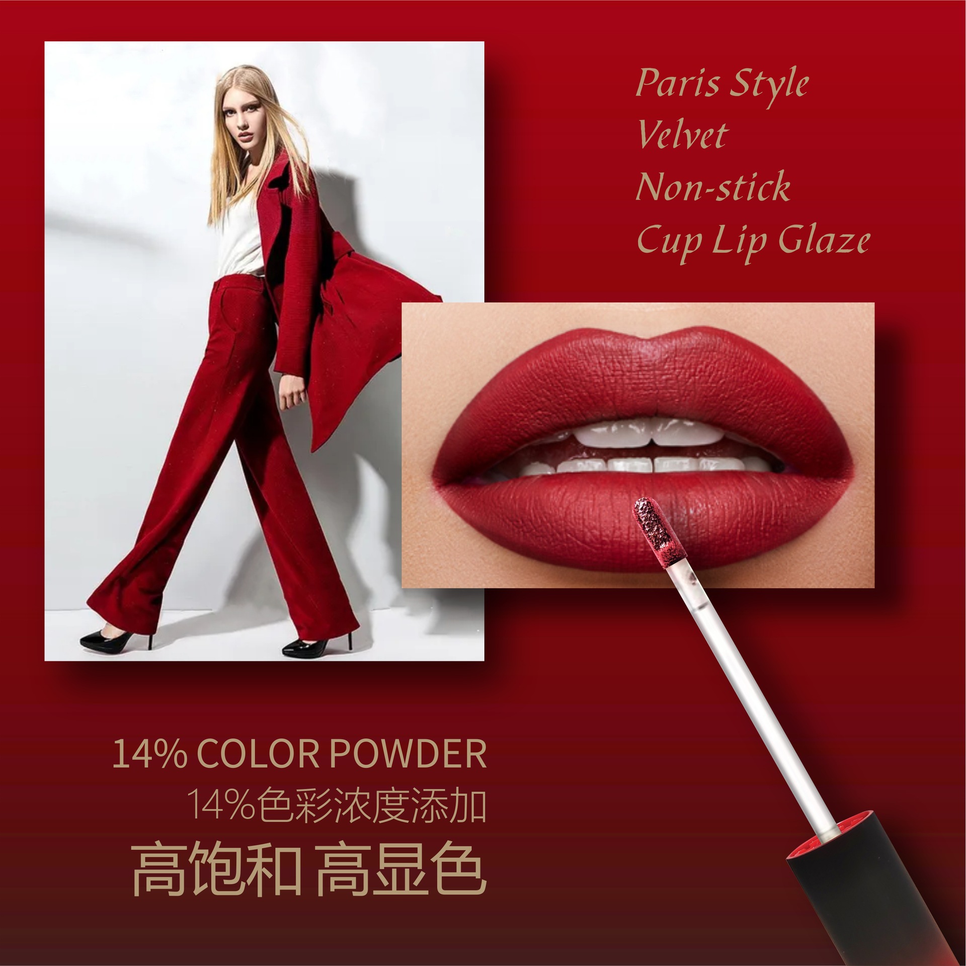 Матовая помада-блеск Midora Parisian style с эффектом бархата и нелипким покрытием, стойкая к выцветанию.