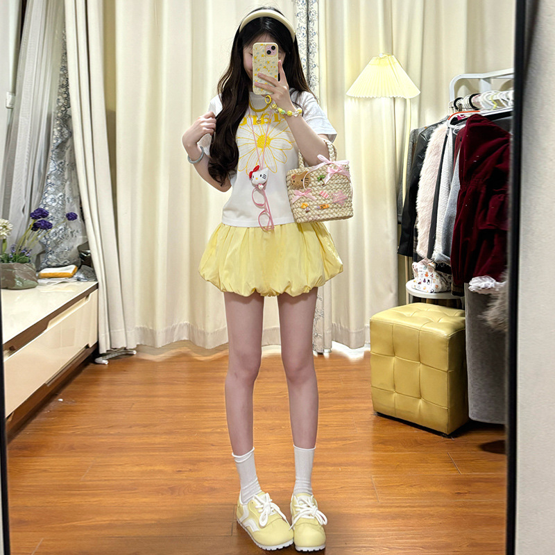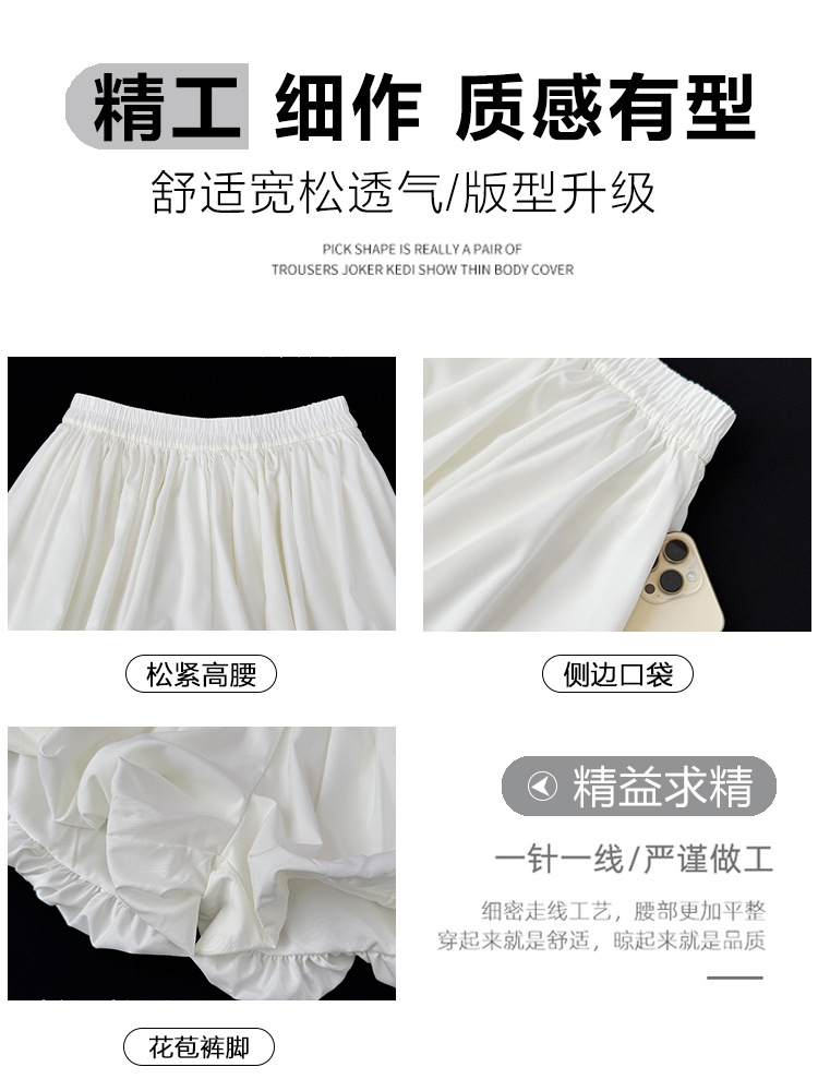 Главная страница > Белые цветочные брюки-кюлоты для женщин, летние тонкие, новинка 2025 года, высокая талия, повседневные, пышные, А-силуэта, широкие, шорты-фонарики