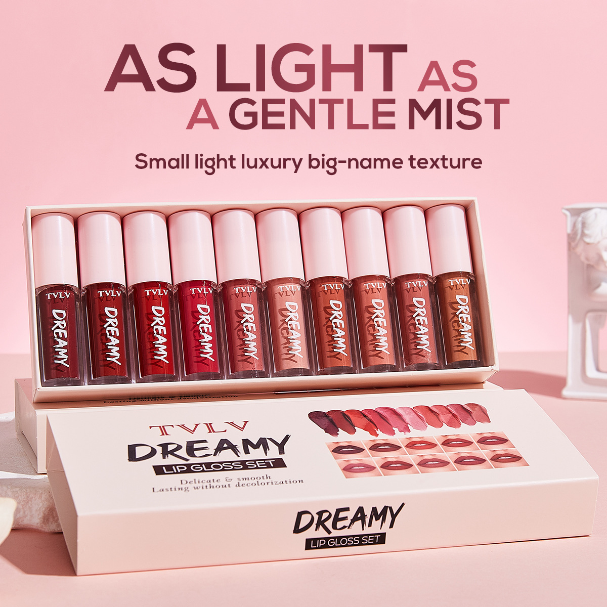 Кросс-бордерный экспорт TVLV Dreamy Lip Glaze Комплект блесков для губ DREAMY LIP GLOSS SET увлажняющий и насыщенный цвет