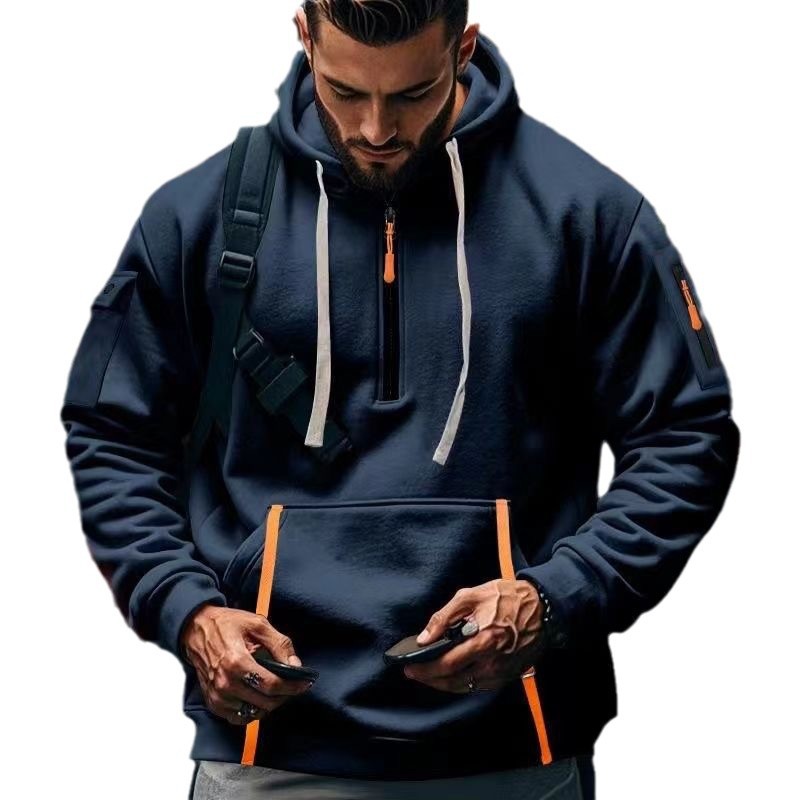 Главная страница > Амазонка Весна и Осень Мужская европейская толстовка с толстовкой на молнии Многокарманный пуловер Мужская спортивная повседневная куртка