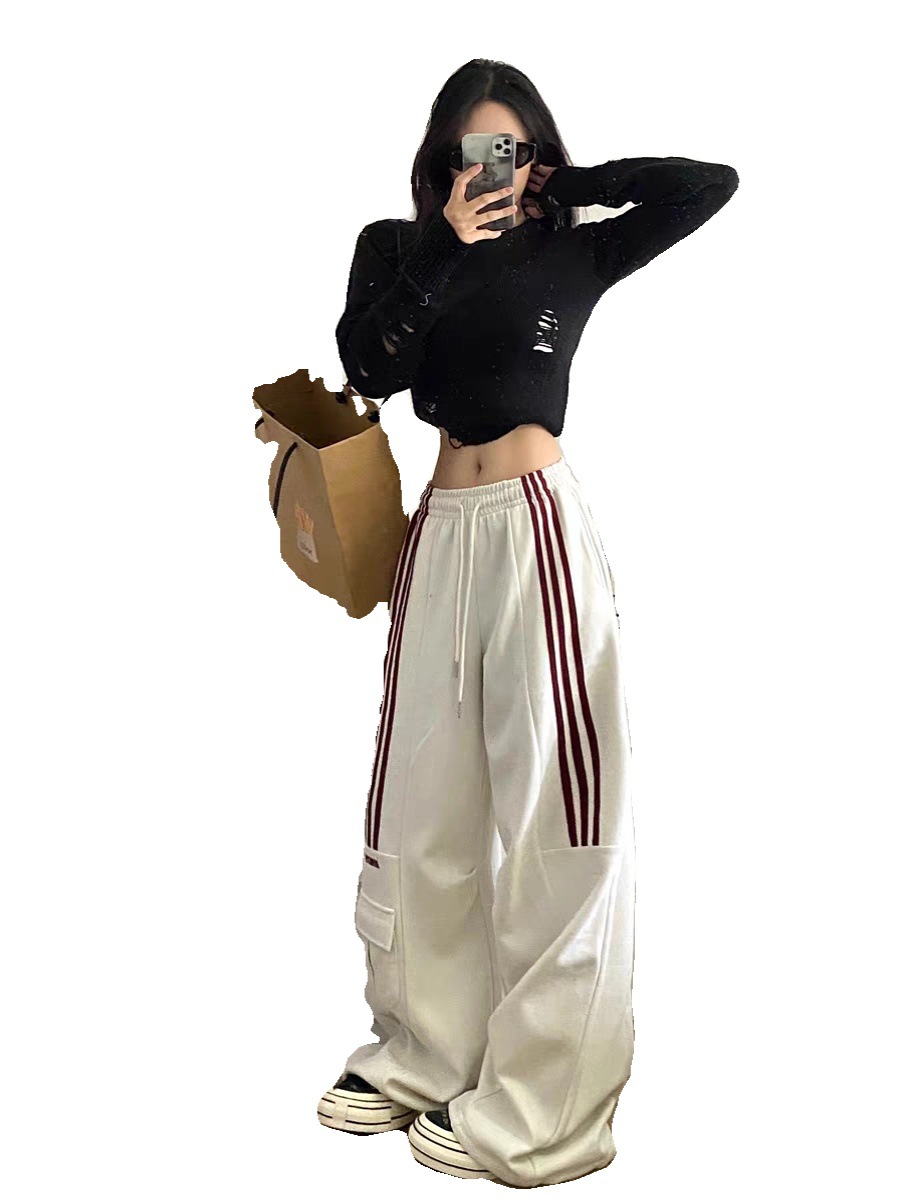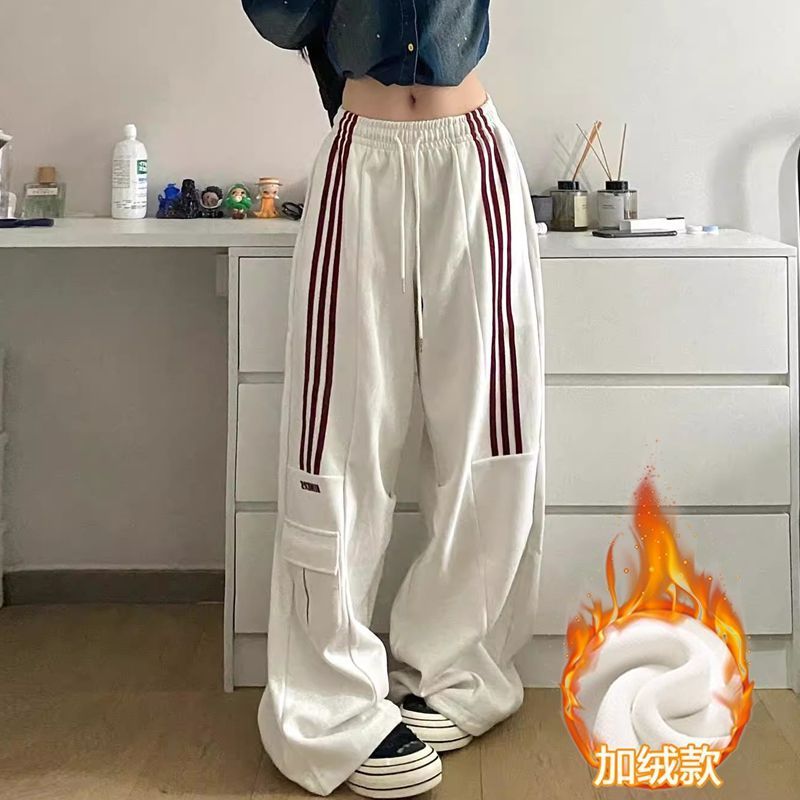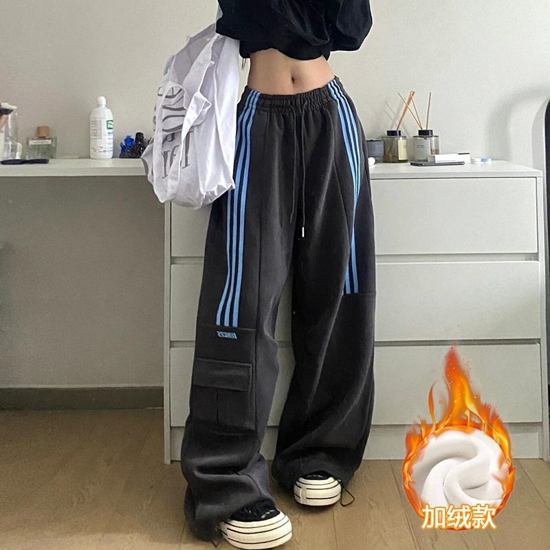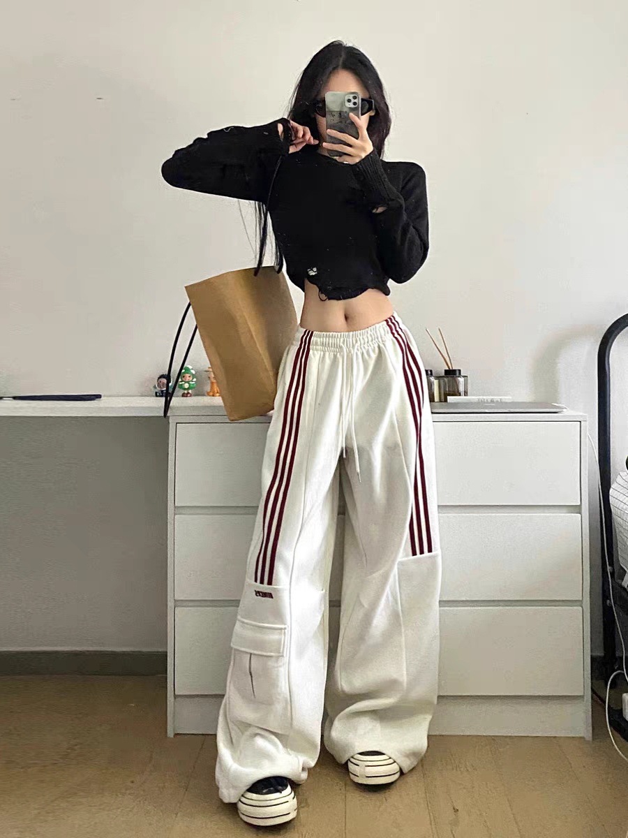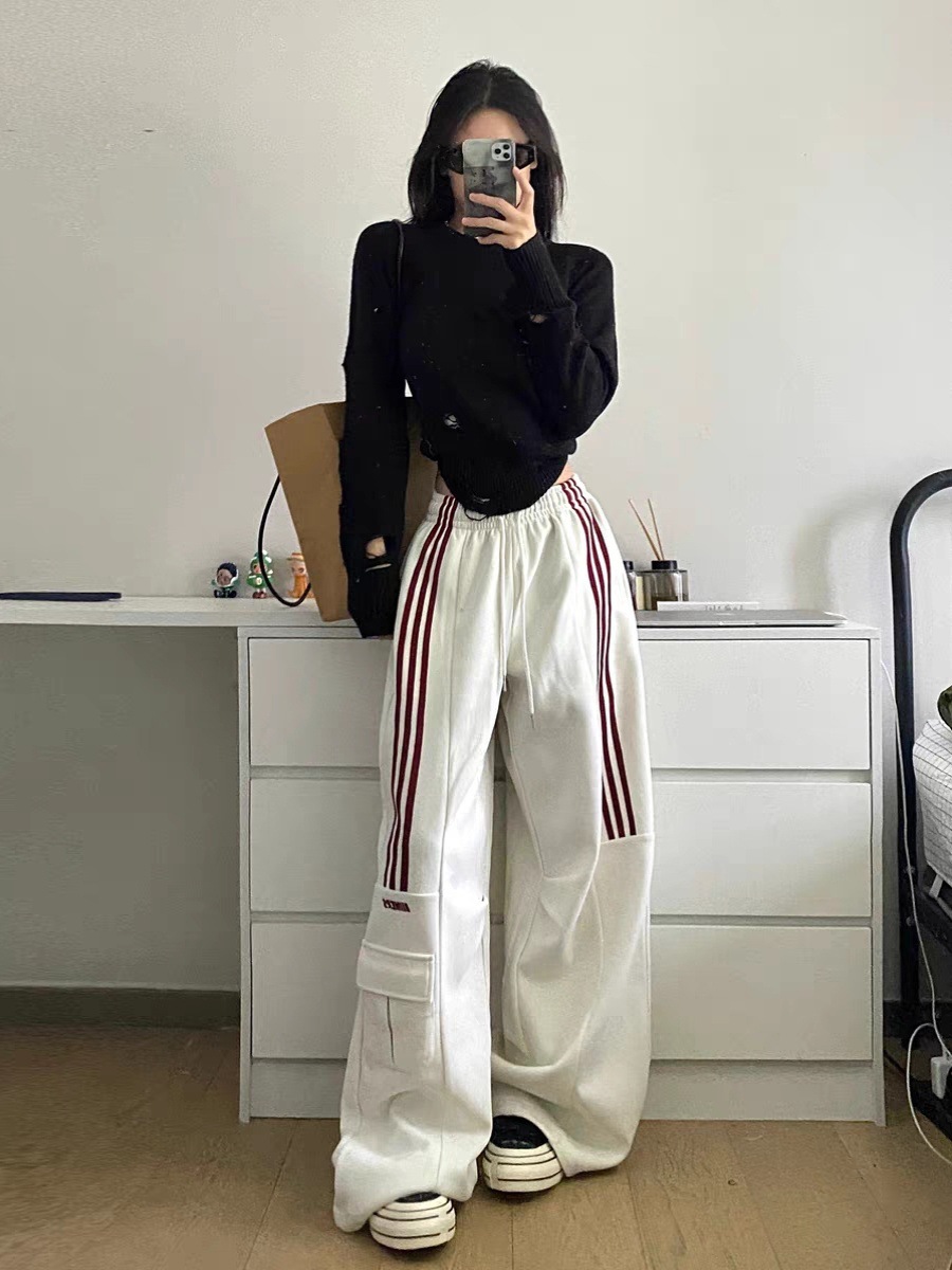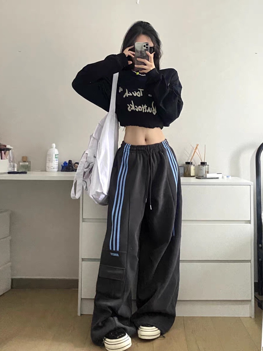 Главная страница > Дизайнерские три бруска комбинезоны женские весенне-осенние американские ретро повседневные спортивные брюки с высокой талией свободные широкие брюки