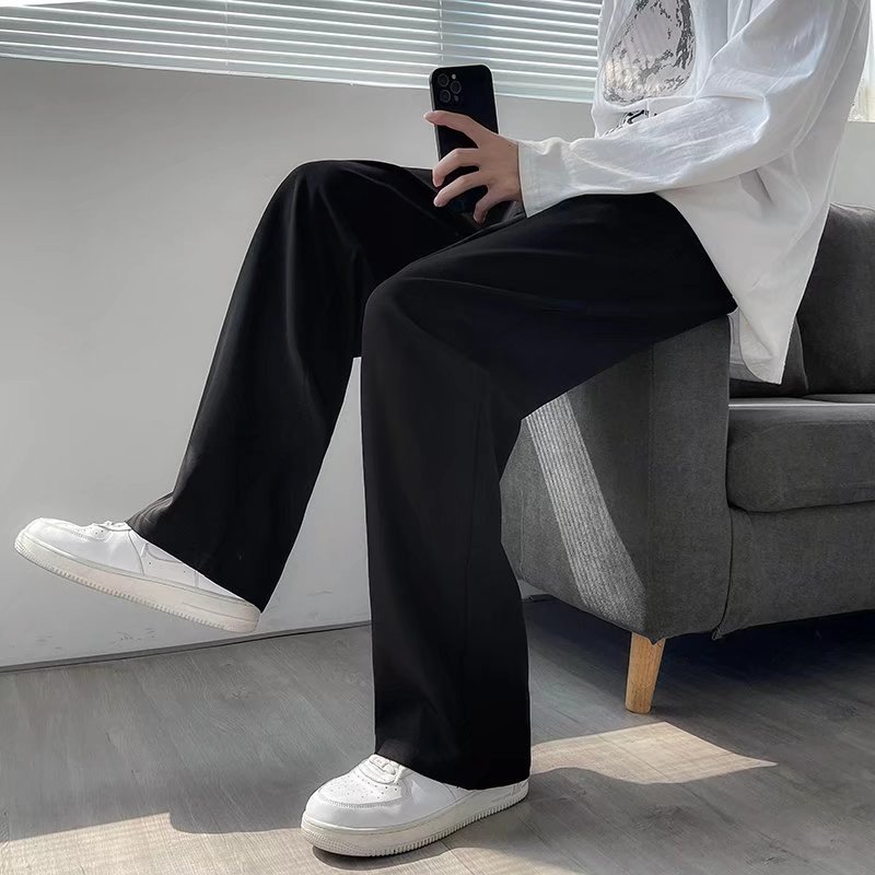 Главная страница > 2022 Летние Новые повседневные брюки, мужские Модные брюки-подвески в Корейском стиле, унисекс, свободные прямые брюки с широкими штанинами