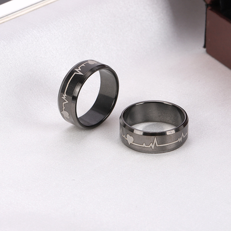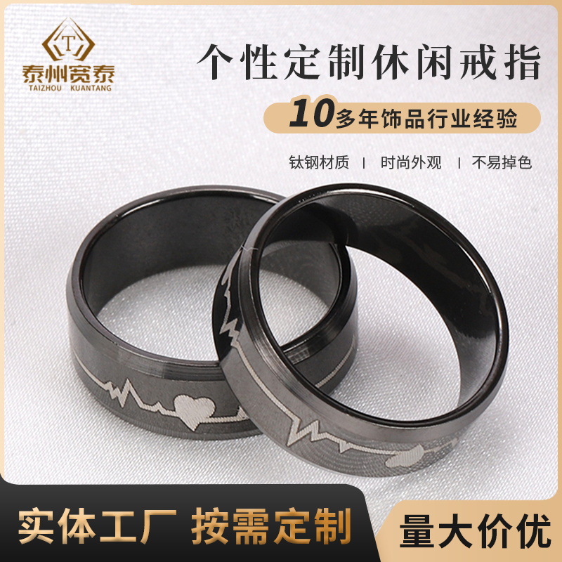 Черное скошенное кольцо из титановой стали кольцо кольцо из нержавеющей стали пара кольцо может иметь логотип гравюры