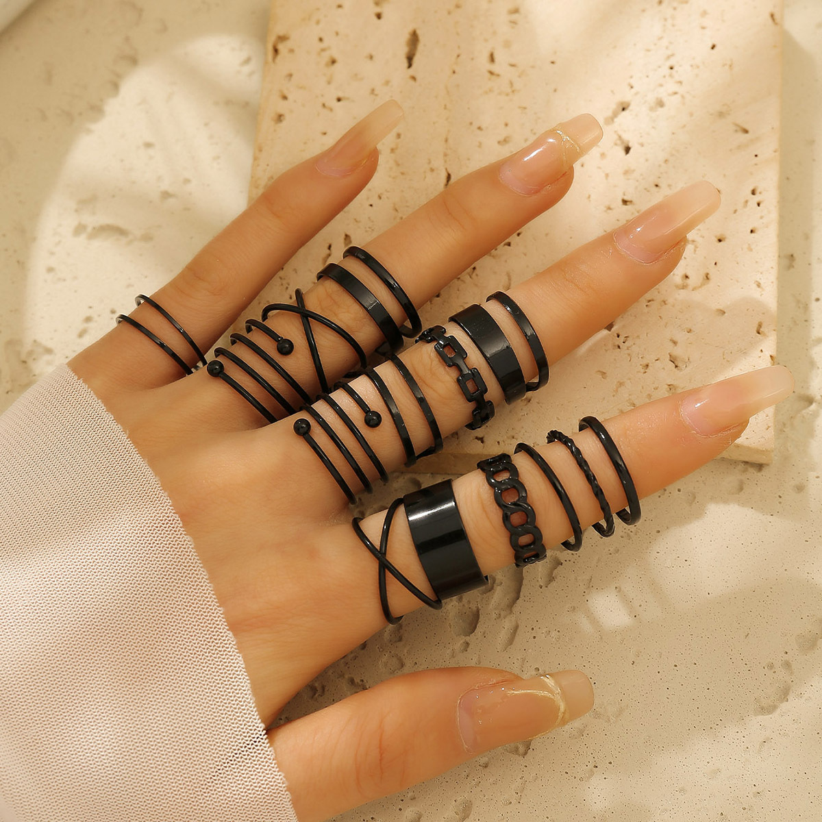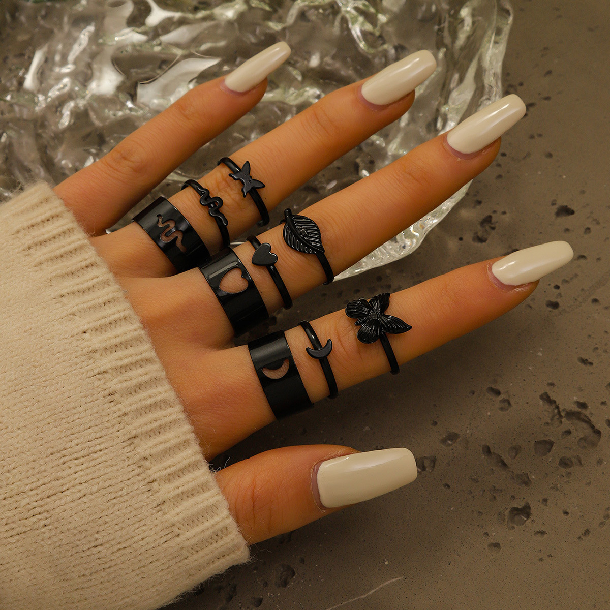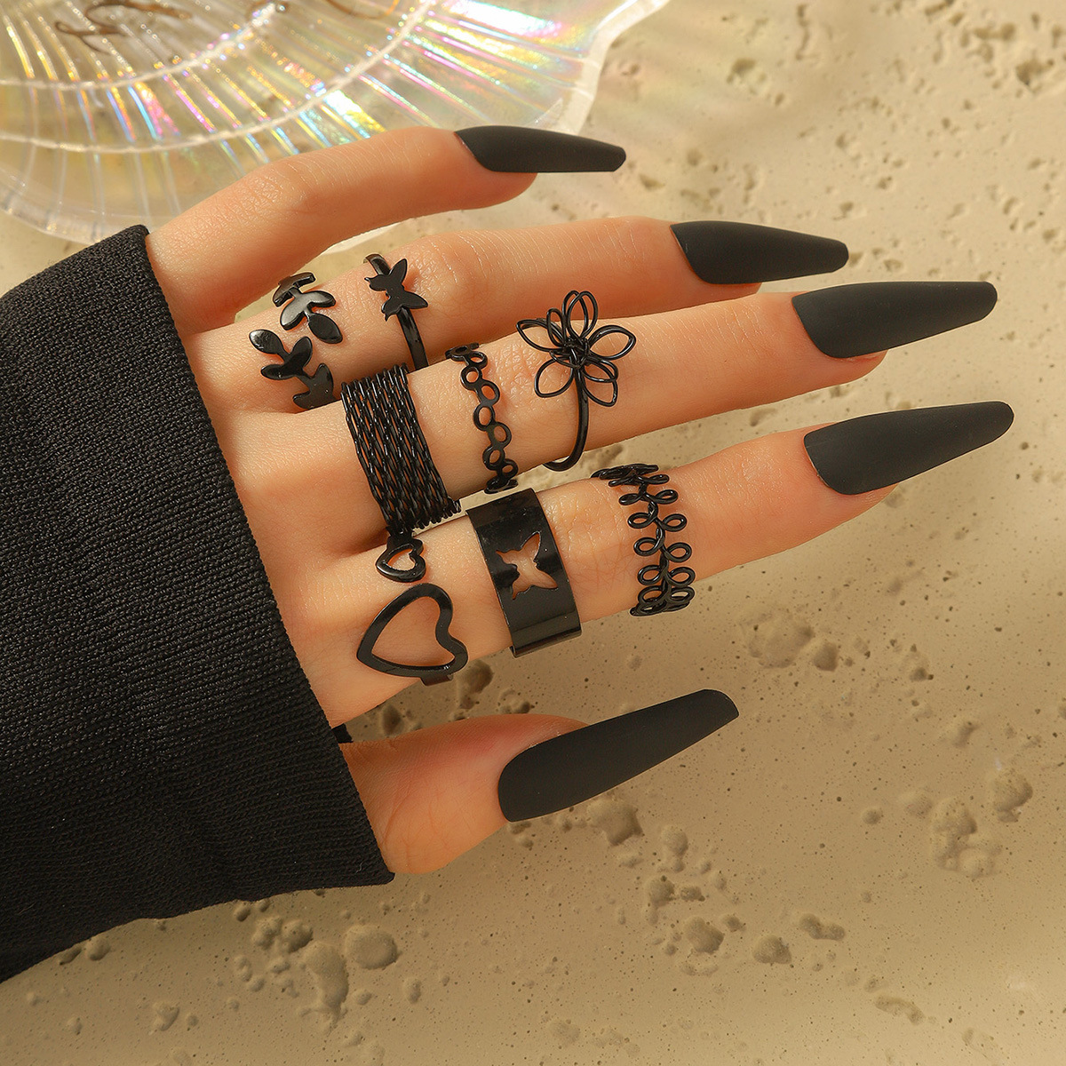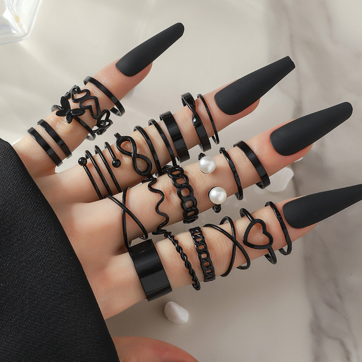 Кольцо Love Butterfly, набор из 22 колец (черный Вес 24 г)