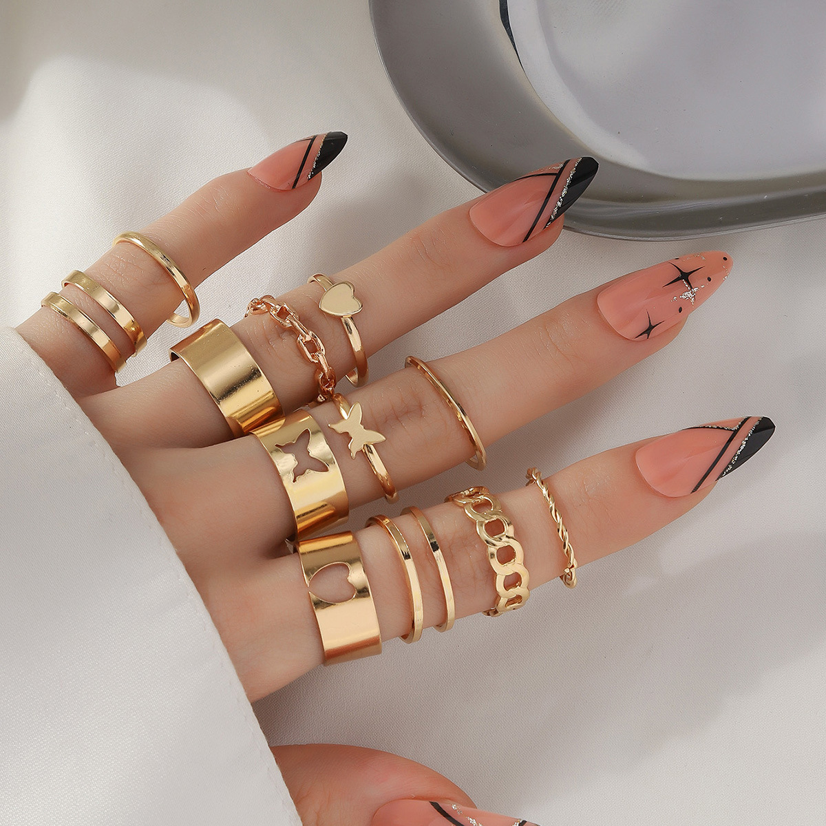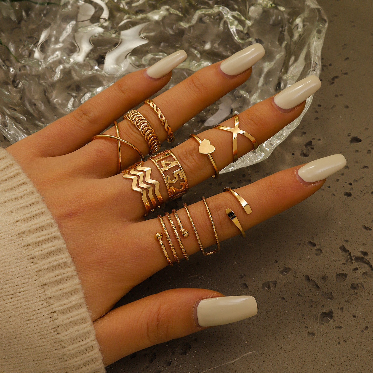 Набор из 12 простых колец для костюма с 8 символами (золото 13 г)