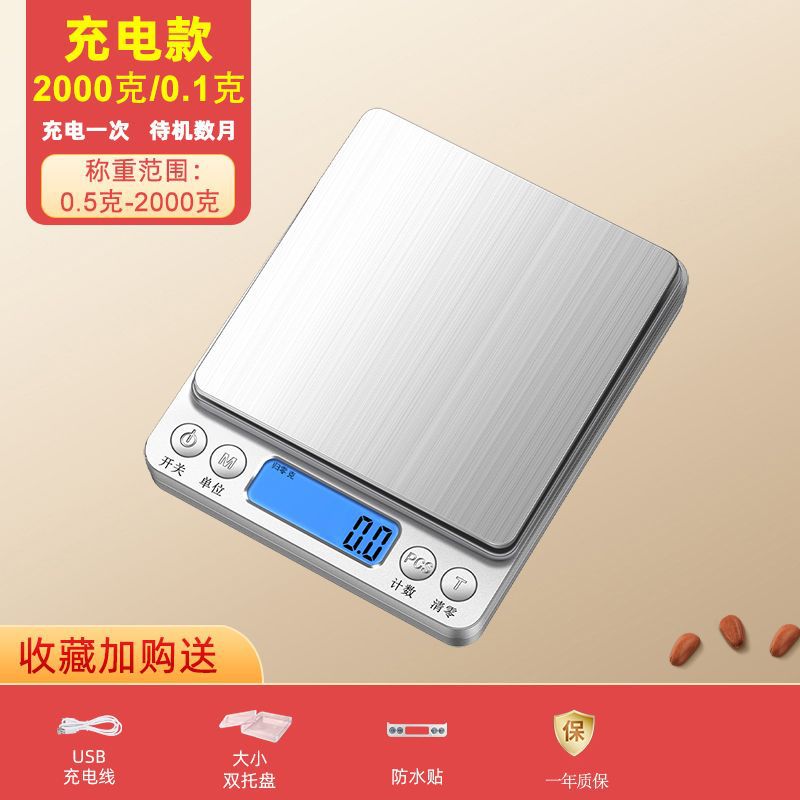 Перезаряжаемая модель (поставляется с зарядным кабелем) — стандартная версия 1000 г/0,1 г поставляется с двумя лотками.