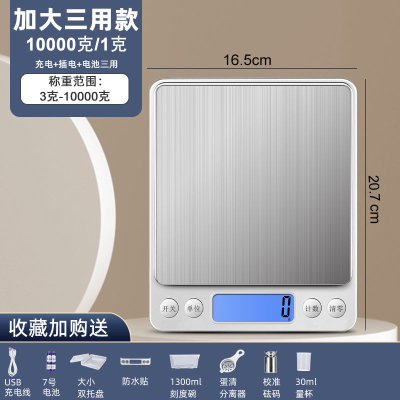 Перезаряжаемая модель (поставляется с зарядным кабелем) — большой диапазон, 3000 г/0,1 г, поставляется с 2 лотками.