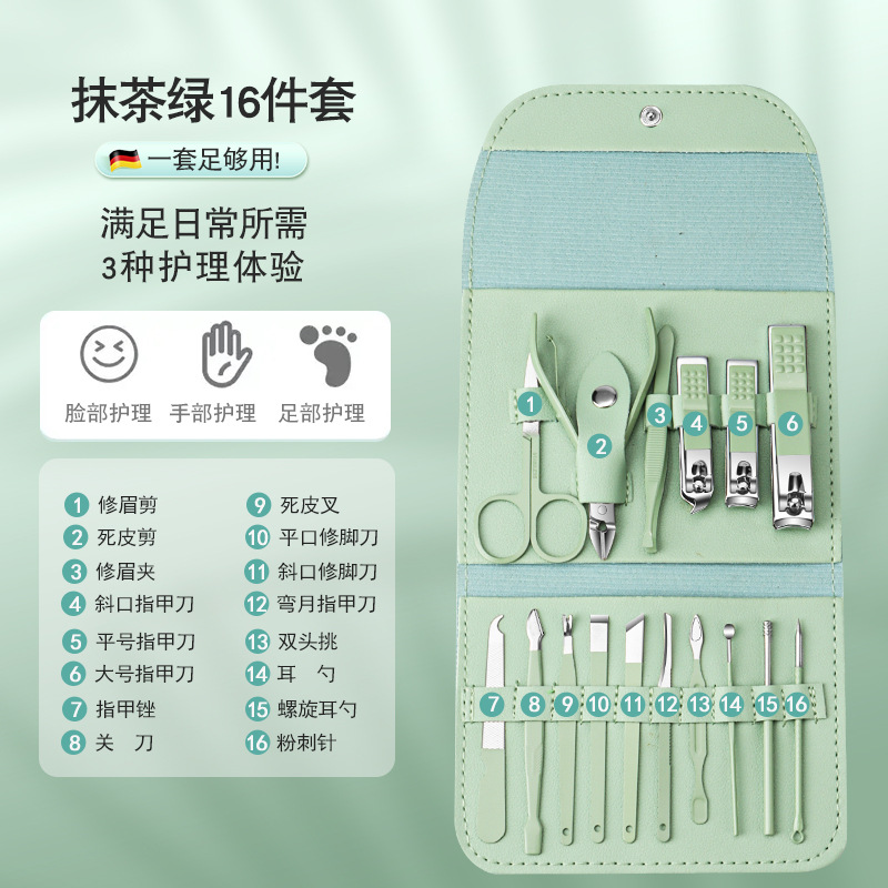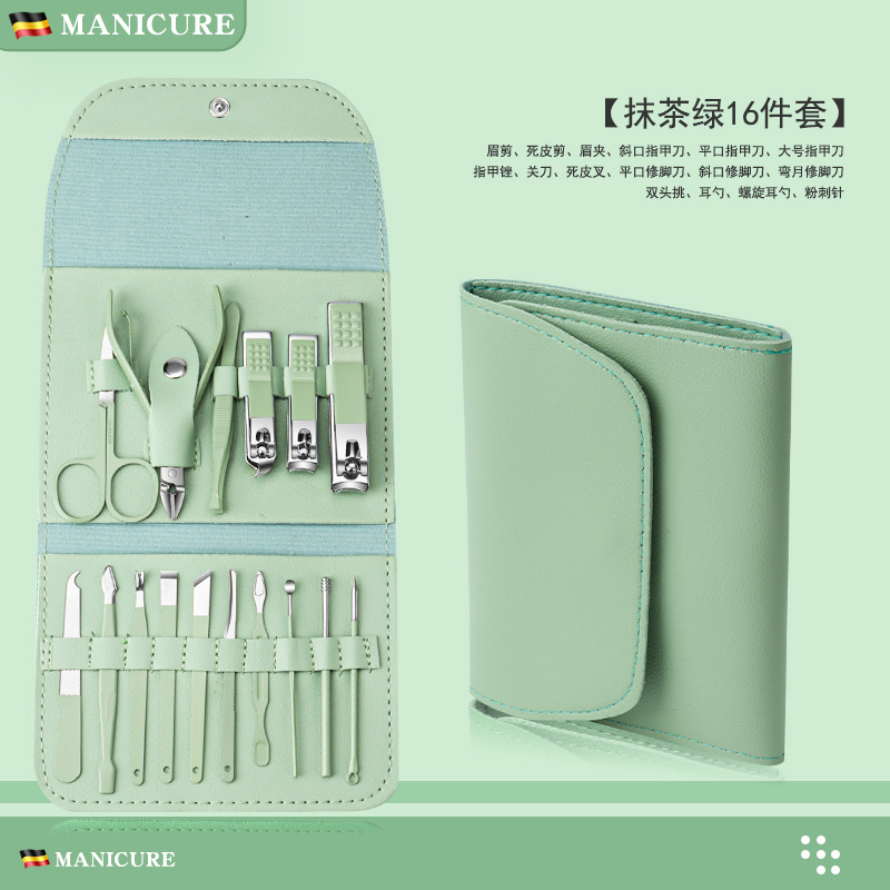 Главная страница > Набор для маникюра из 16 предметов: зеленый складной футляр, кусачки для ногтей, полный комплект инструментов для маникюра из нержавеющей стали