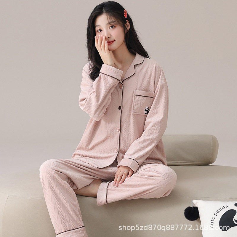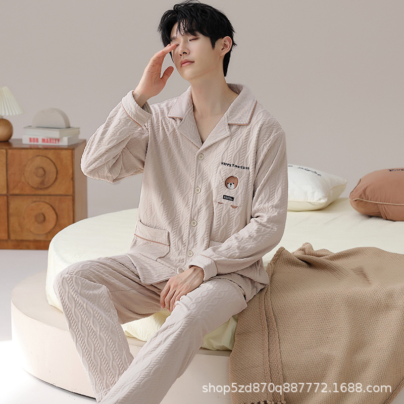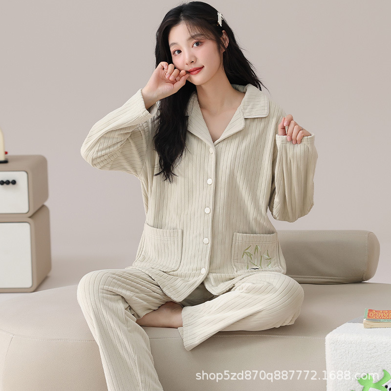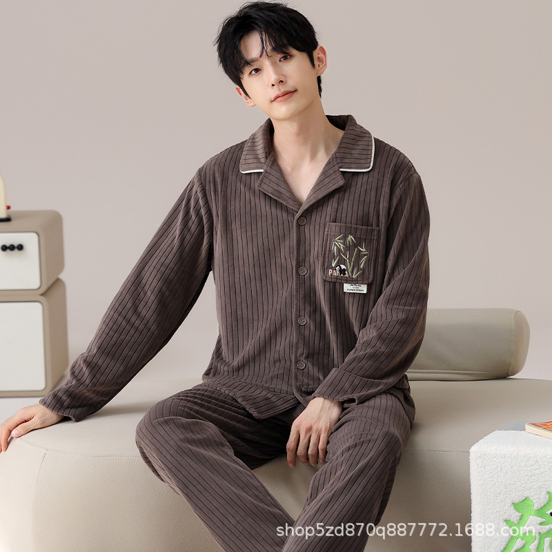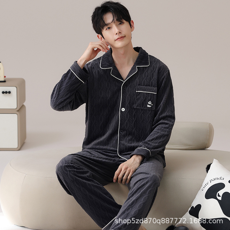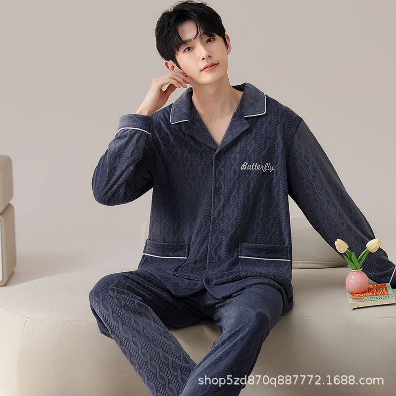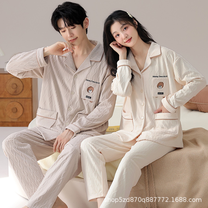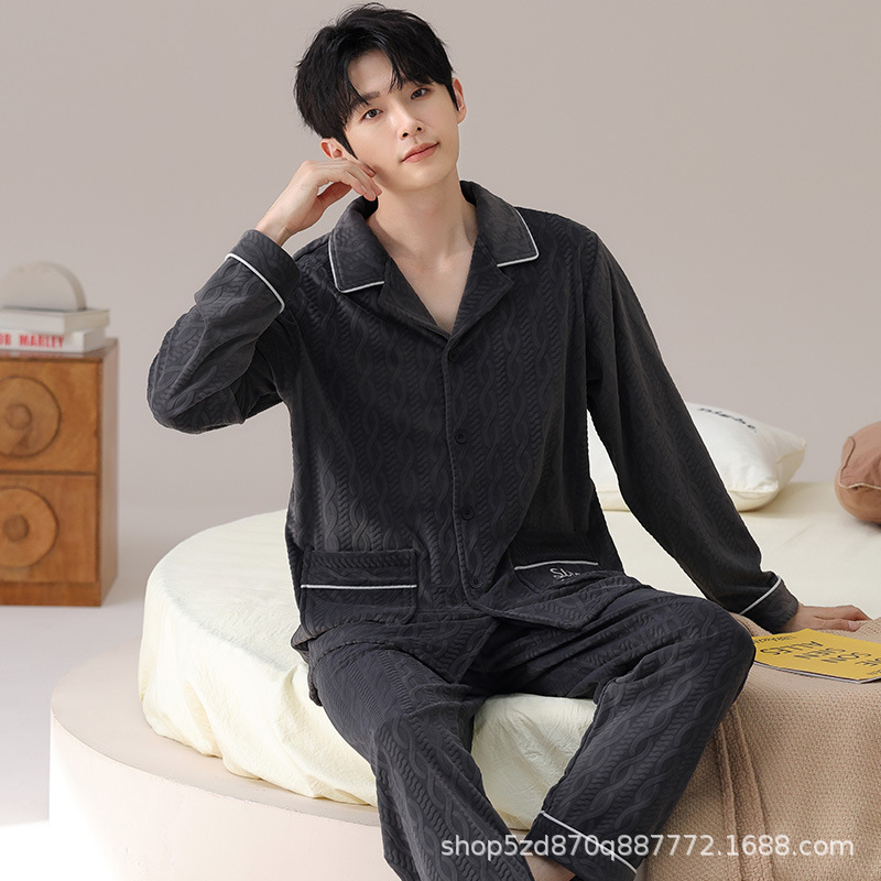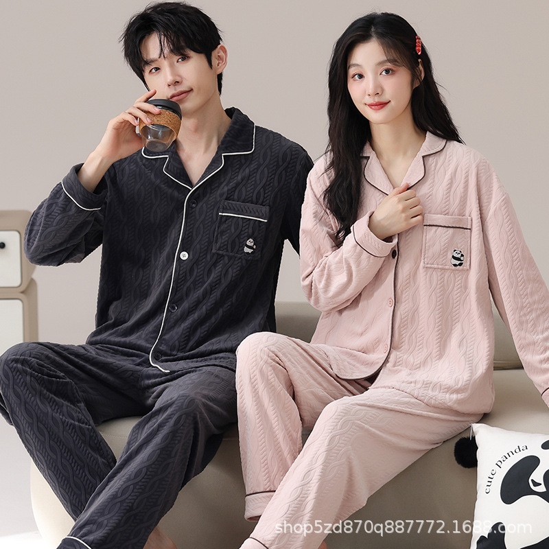 Главная страница > Новая пара мужчин и женщин кардиган с длинными рукавами из островного бархата маленькая ароматная пижама теплая зимняя мужская и женская лацкая домашняя одежда