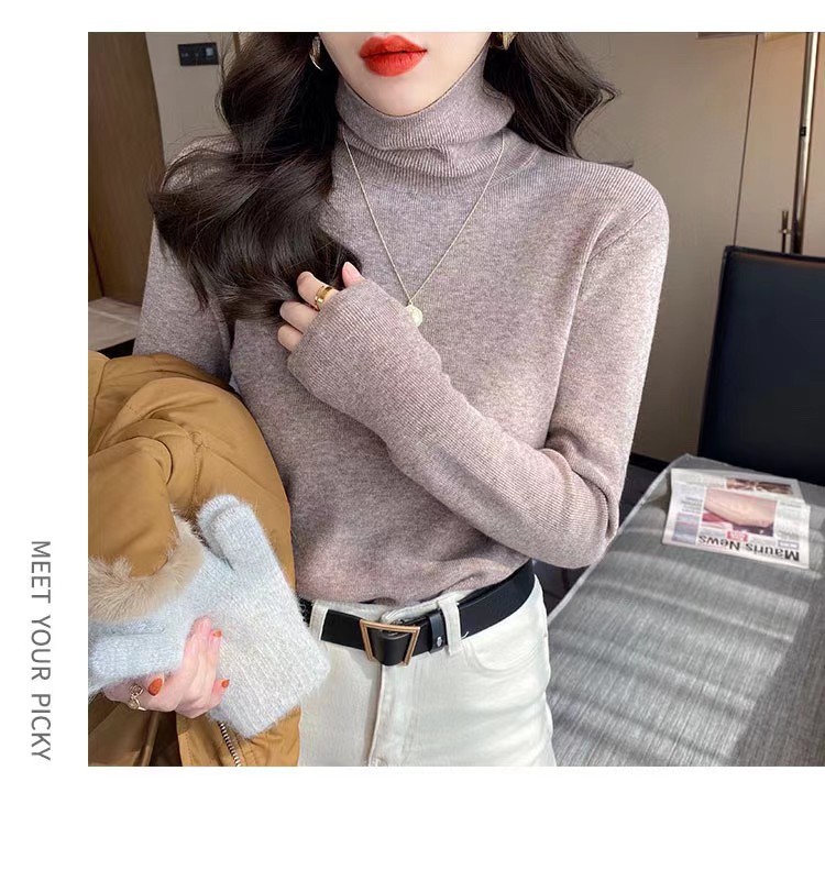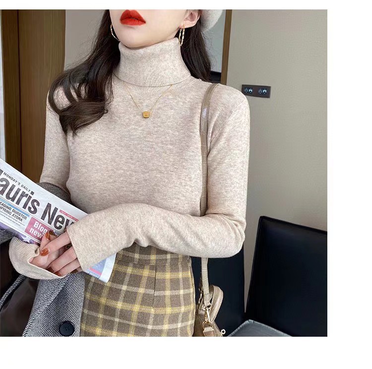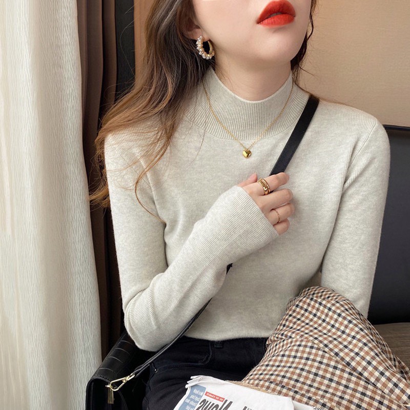 Главная страница > Женская кашемировая базовая рубашка, осенне-зимний новый универсальный стильный внутренний свитер, женский трикотаж с длинными рукавами и высоким воротником, полувысокий воротник