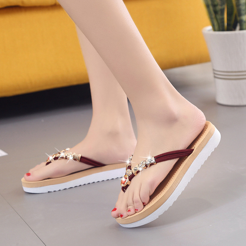 Главная страница > 2023 летние новые богемные сандалии на плоской подошве, Женская Внешняя торговля, шлепанцы больших размеров со стразами, женская обувь