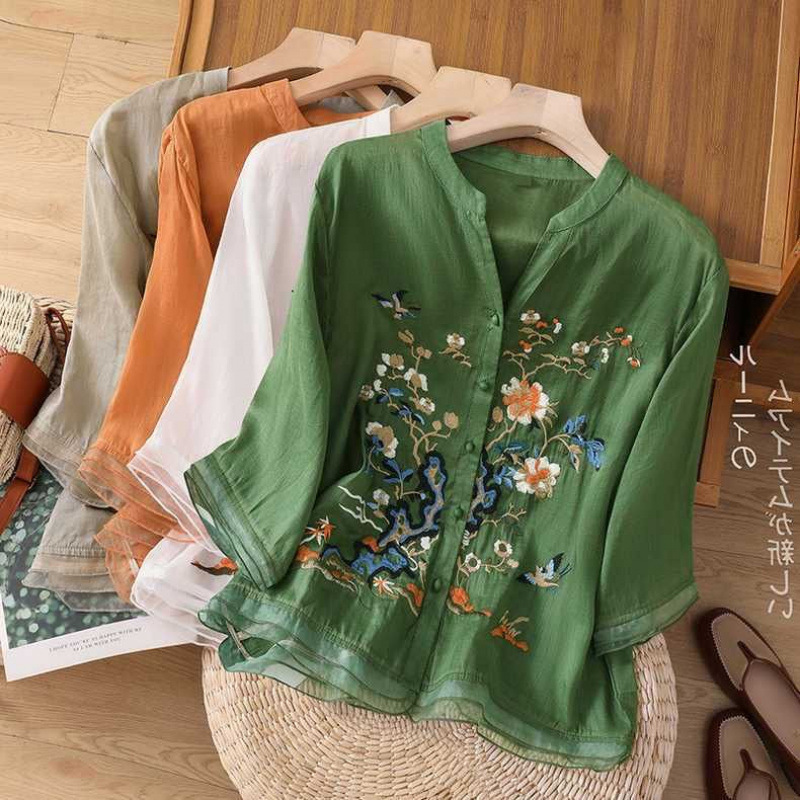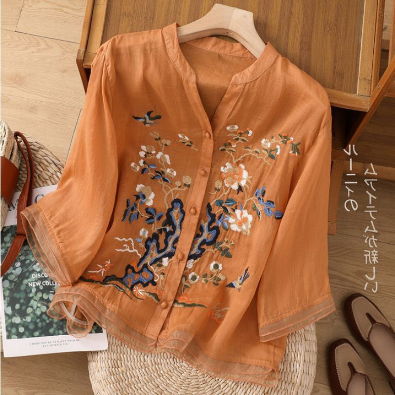 Главная страница > Женская рубашка с рукавами четверти, новый топ-кардиган с вышивкой, новая рубашка на пуговицах в национальном стиле в китайском стиле, цельная прямая доставка