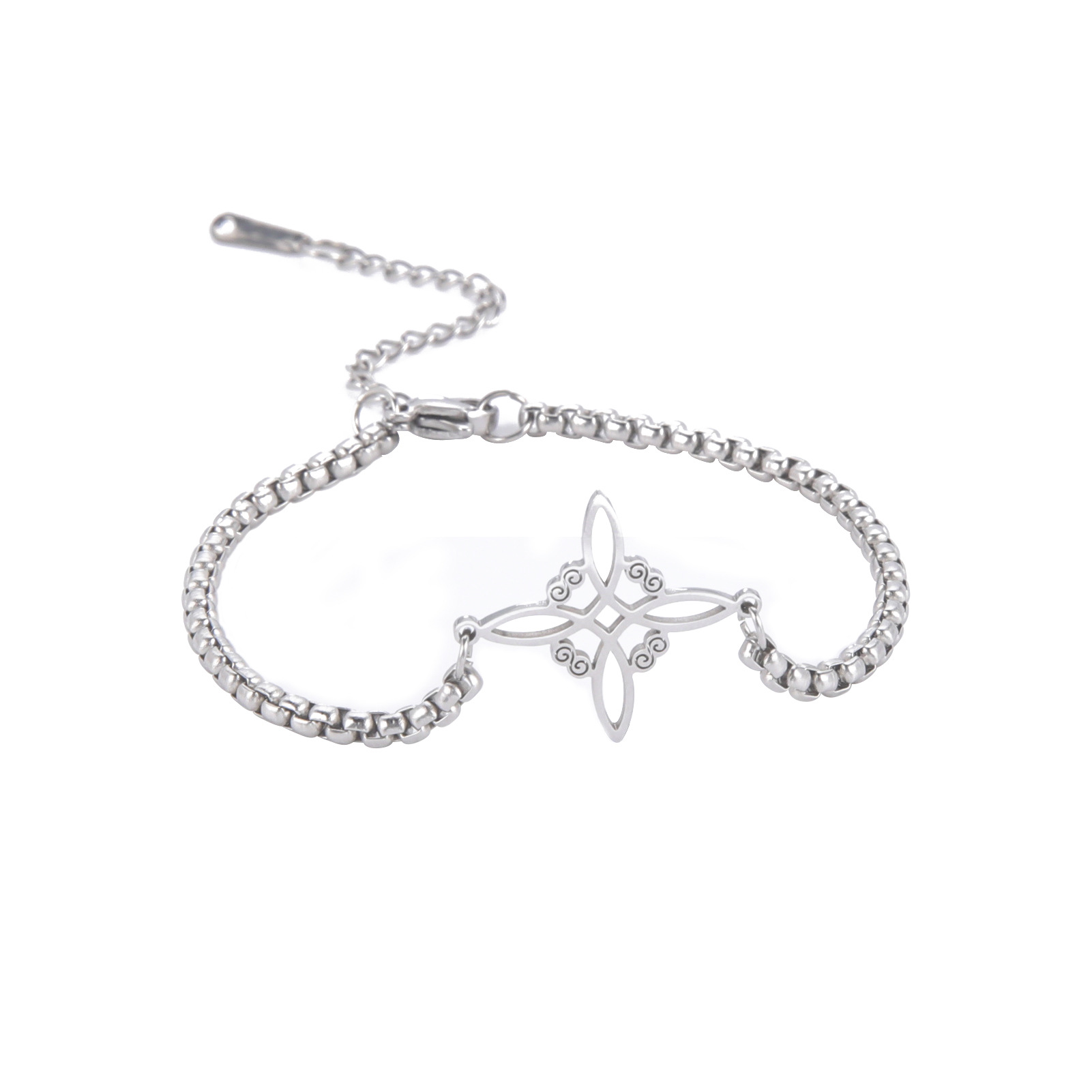 Главная страница > Корейские Горячие производители прямые волосы стиль ведьминский узел S-образный кулон с двойным отверстием коробка цепочка браслет из нержавеющей стали
