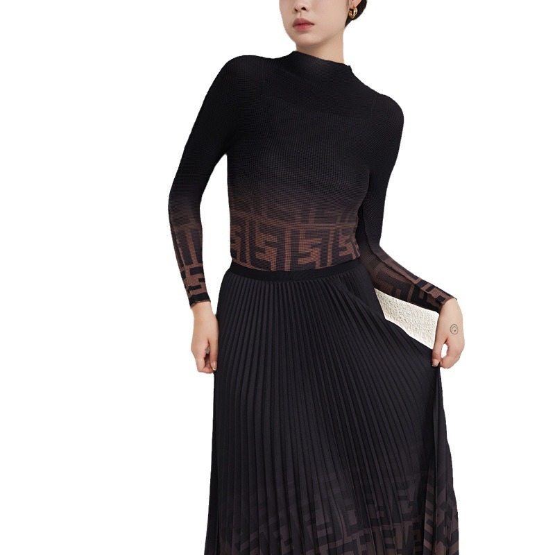 Костюм Miyake Autumn: Новинка! Женский комплект из топа и плиссированной юбки. Модный высококачественный костюм в европейском и американском стиле для женщин.
