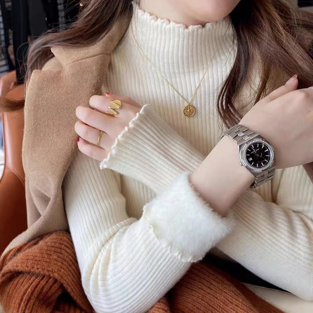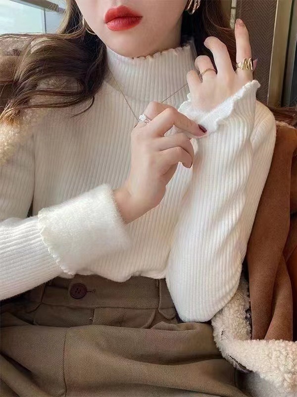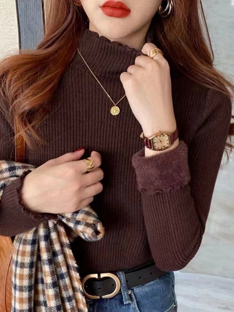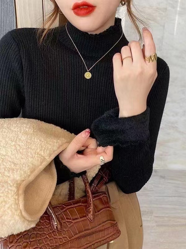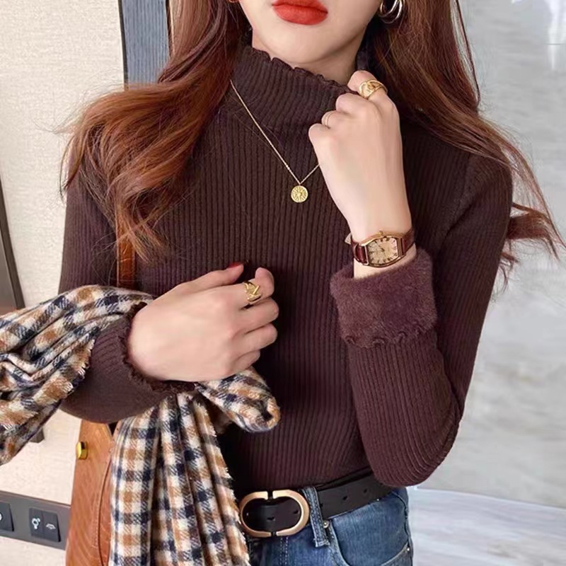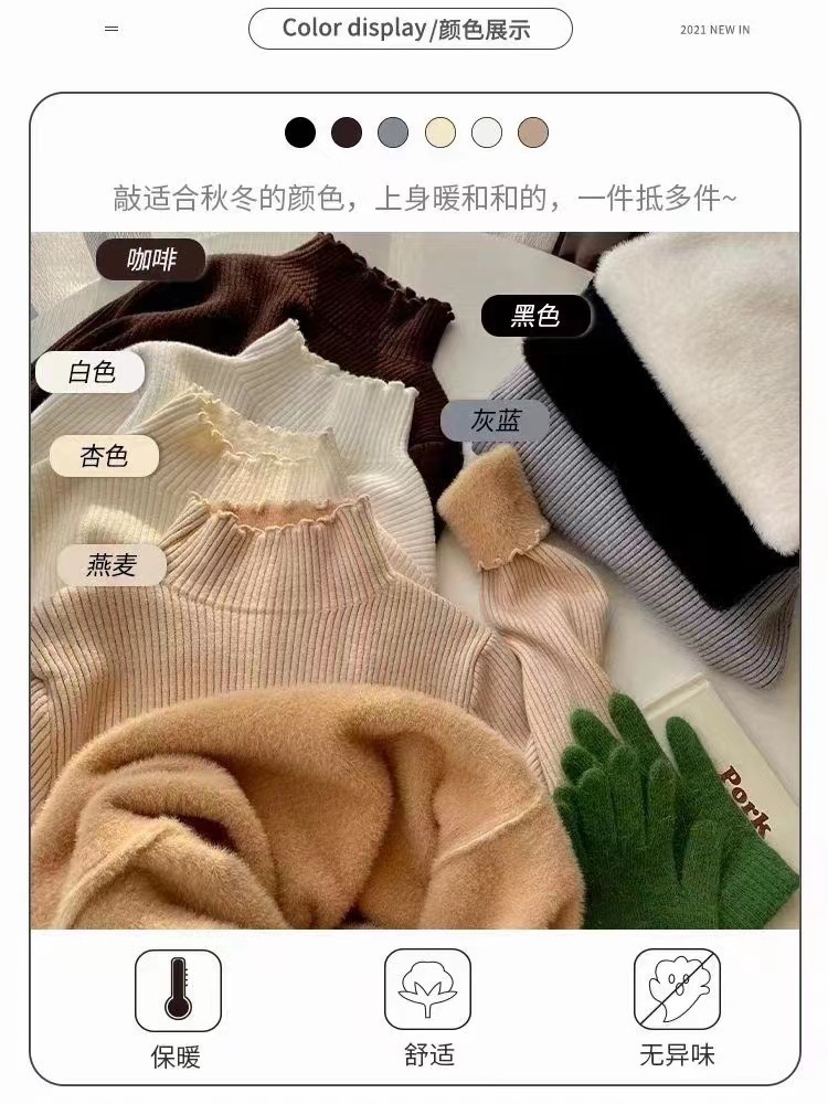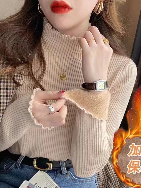 Главная страница > Цельная флисовая Базовая рубашка с половинным воротником, женский осенне-зимний новый утолщенный свитер на флисовой подкладке, вязаный свитер с деревянными ушками в западном стиле