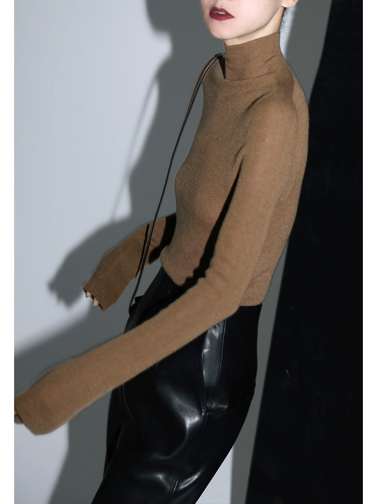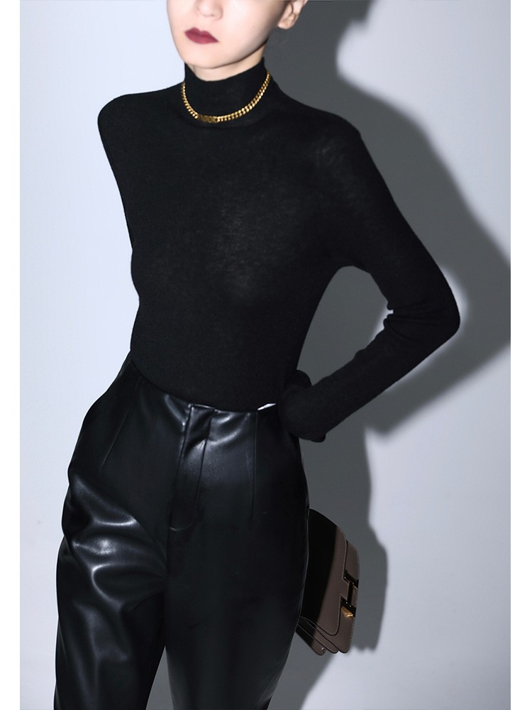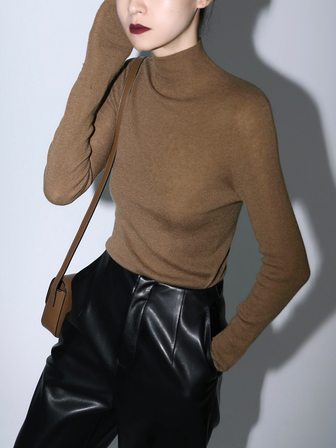Главная страница > Высокороскошная кашемировая шелковая бесшовная готовая одежда, приятная для кожи, приталенный базовый свитер с высоким воротником для женщин для осени и зимы