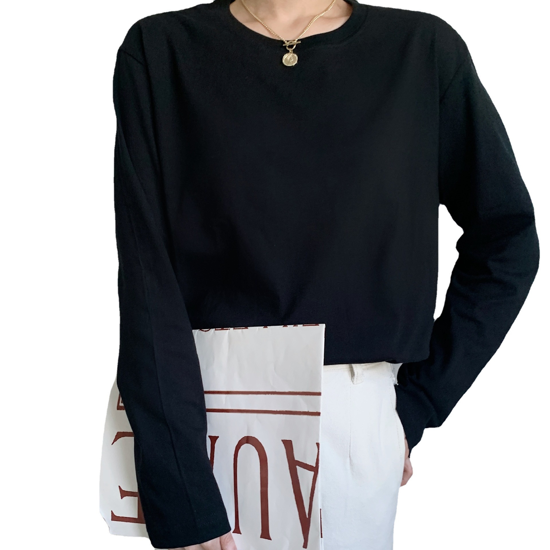 Главная страница > Тяжелая футболка из чесаного хлопка Синьцзян 230 г, однотонная, с длинным рукавом, Женская свободная осенне-зимняя рубашка-основа, живая