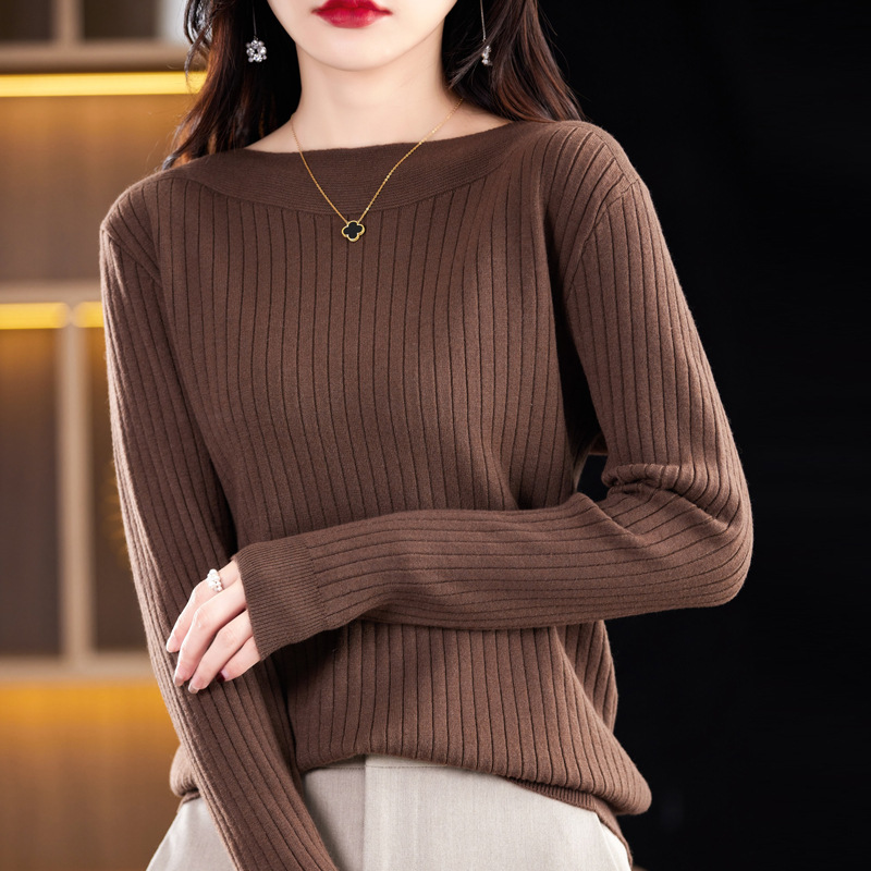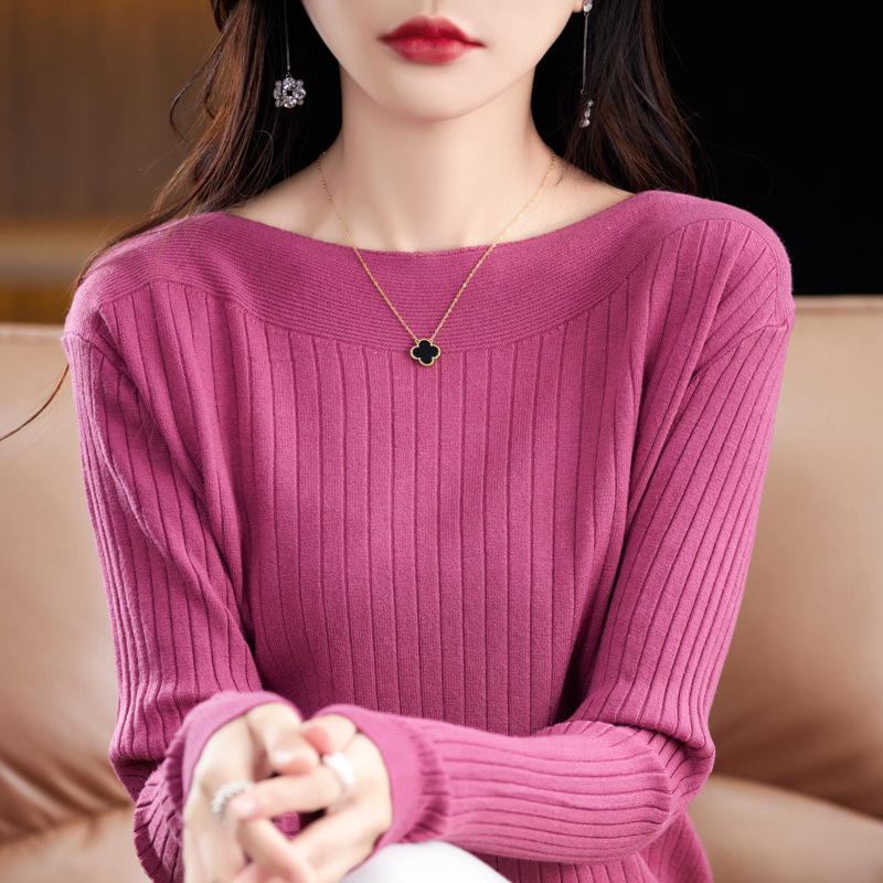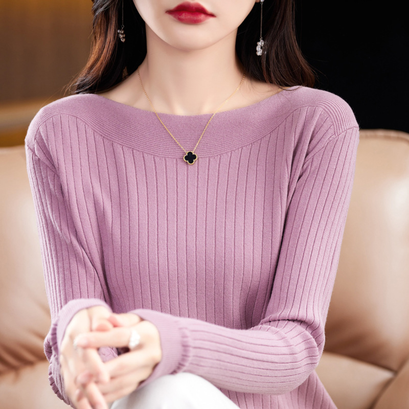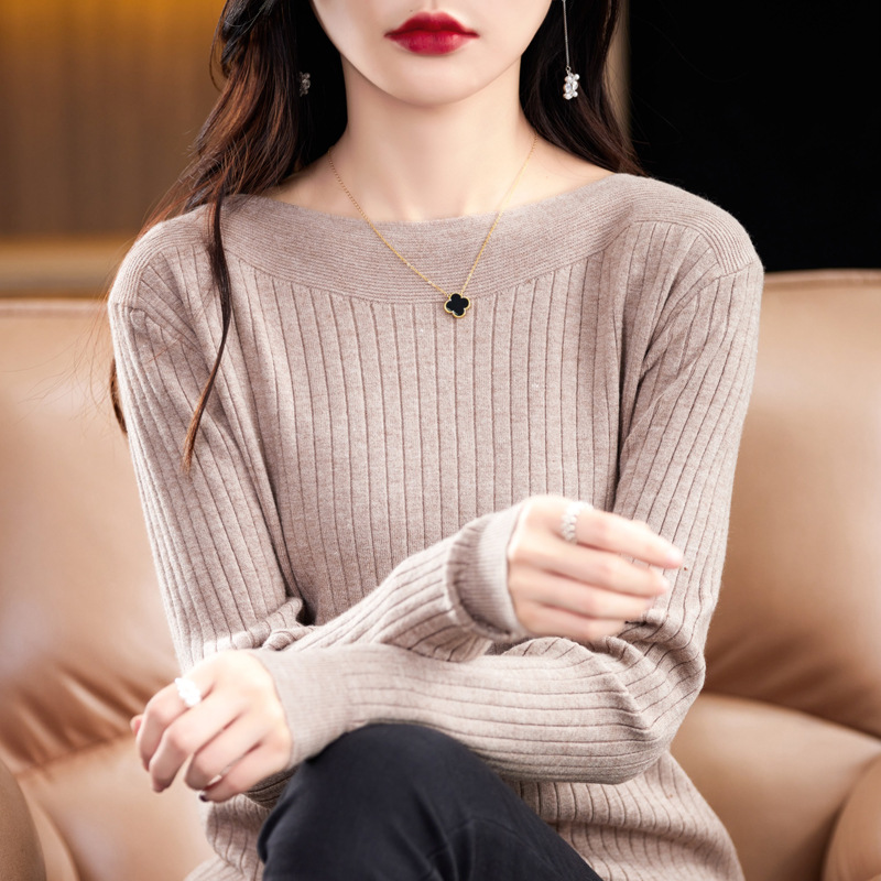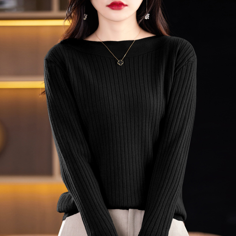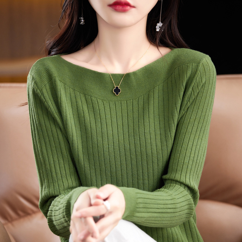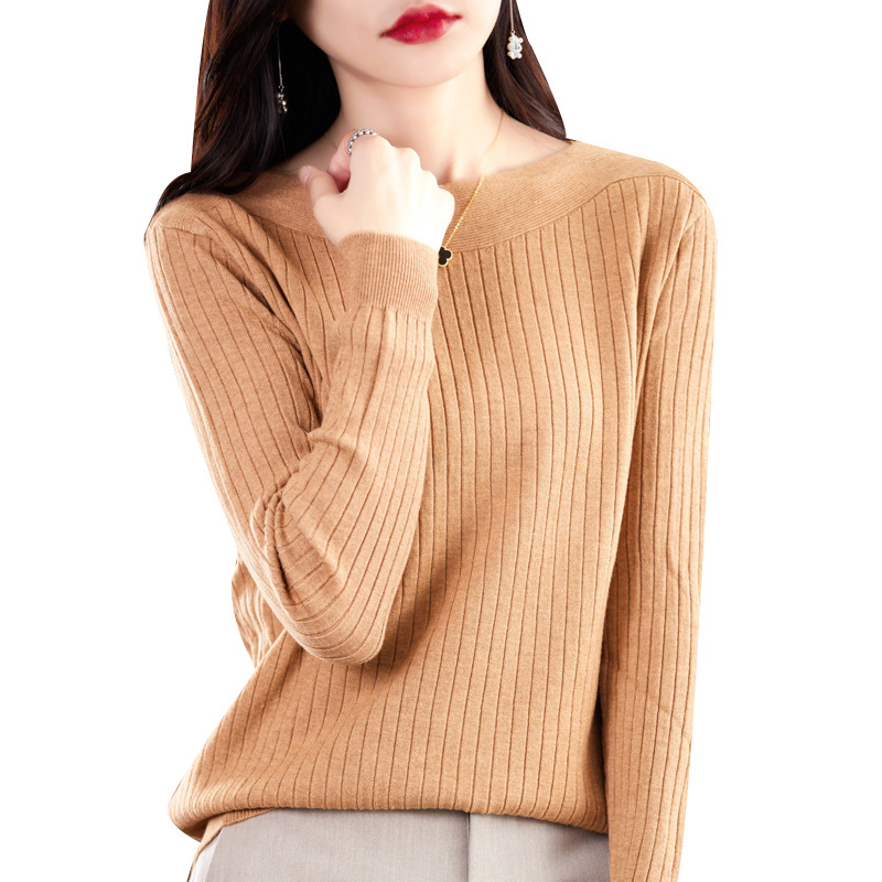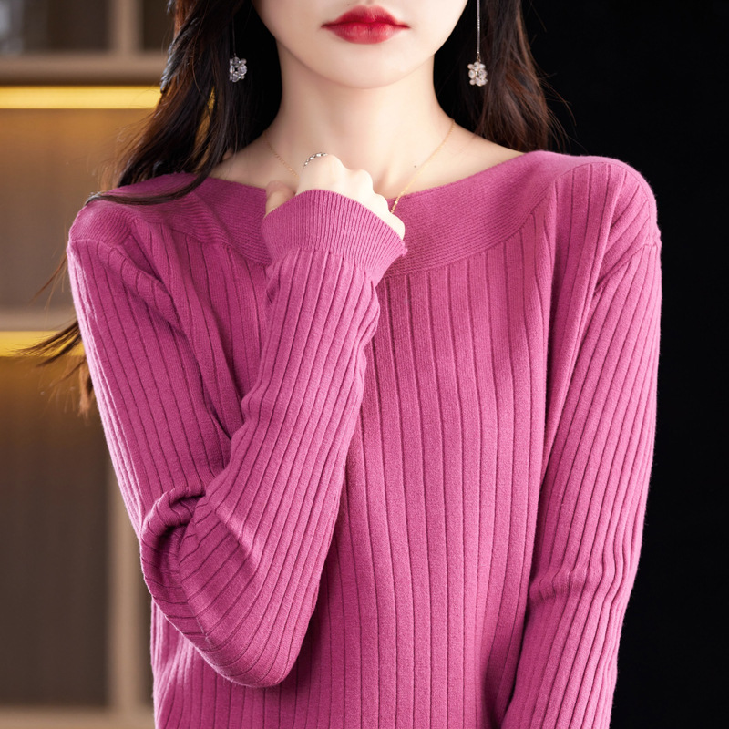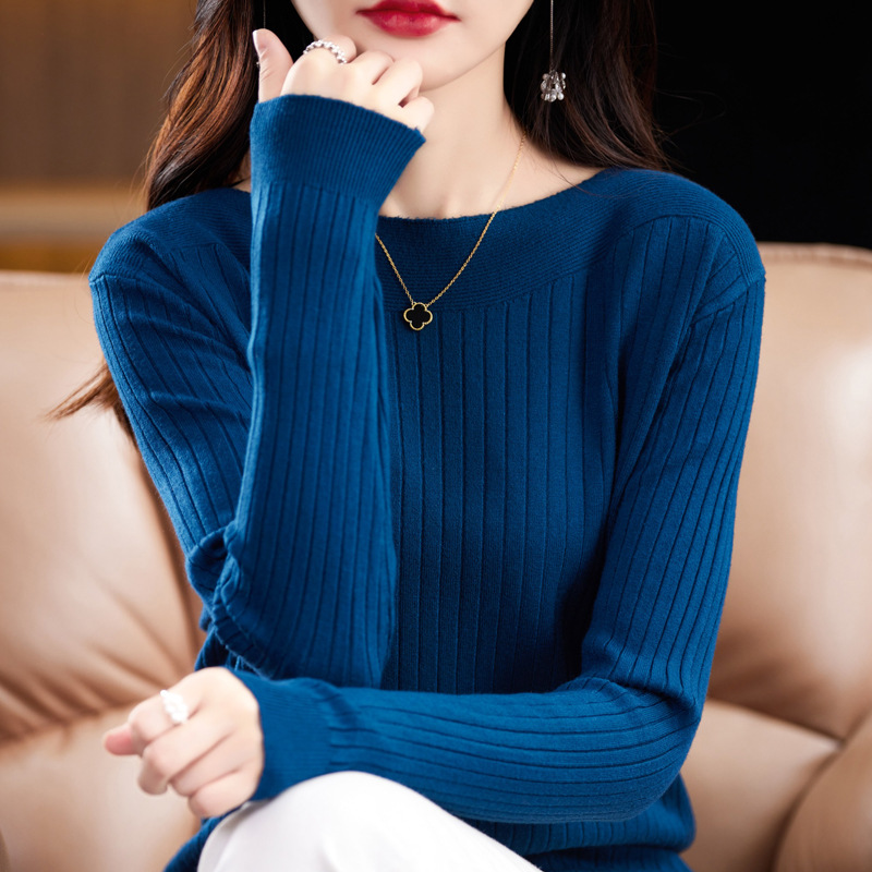Главная страница > Элитный женский свитер на одно плечо, новая осенне-зимняя модель с круглым вырезом, вязаный свитер с длинными рукавами, базовая рубашка без шерсти.