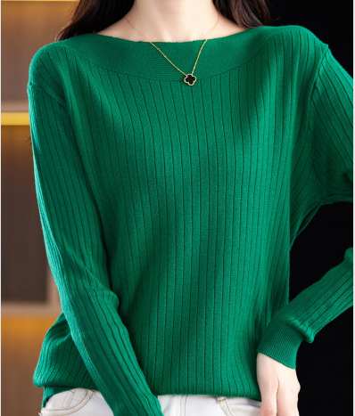 Элитный женский свитер на одно плечо, новая осенне-зимняя модель с круглым вырезом, вязаный свитер с длинными рукавами, базовая рубашка без шерсти.