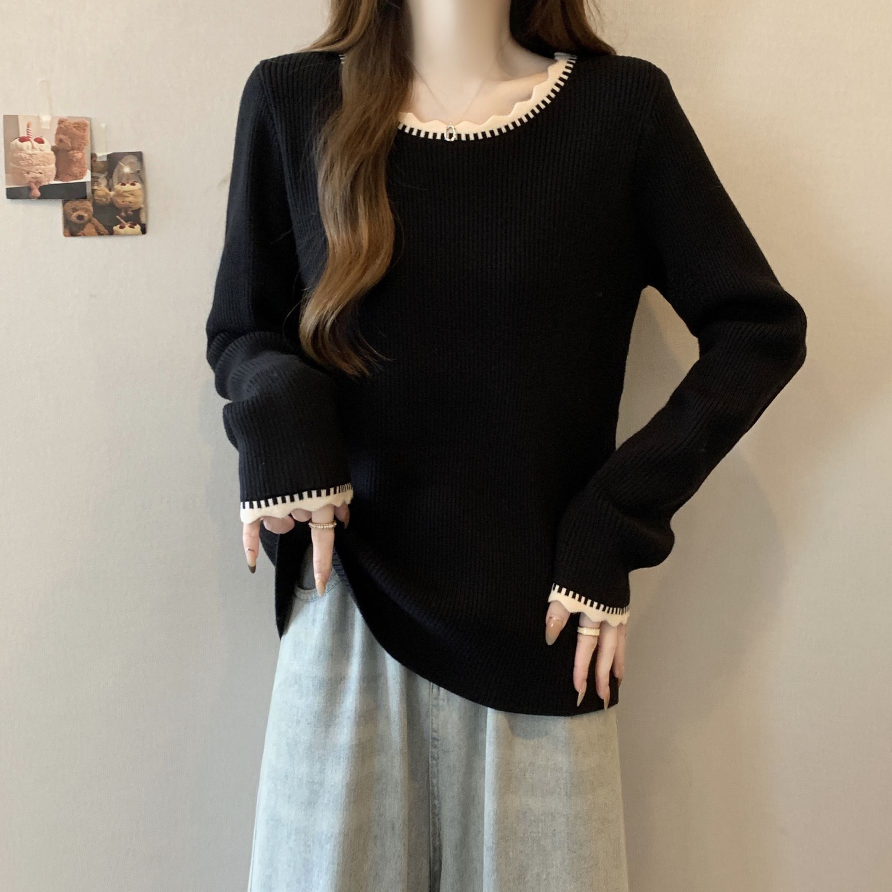 Главная страница > Женская кружевная футболка больших размеров с длинными рукавами, весна-осень 2025, новый свободный модный топ для похудения, закрывающий живот
