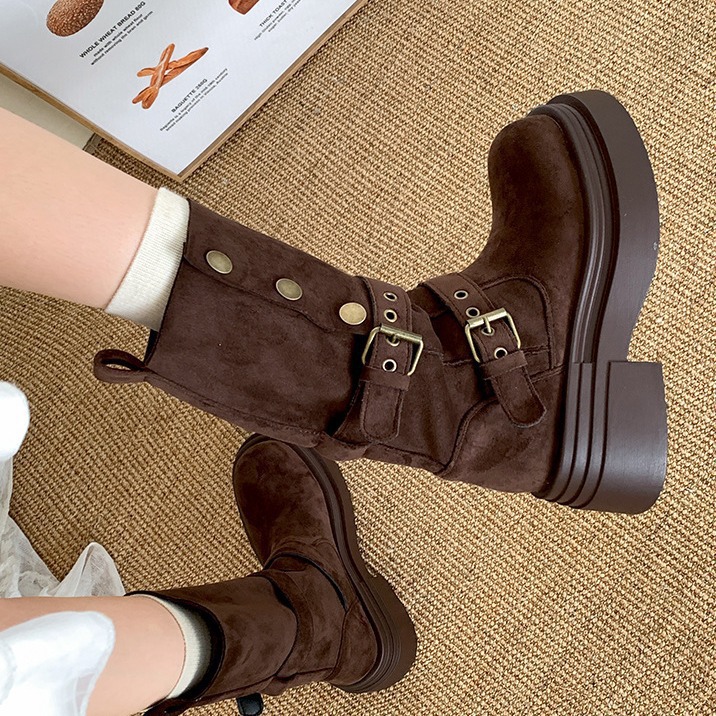 Главная страница > Коричневый винтажный британский стиль толстый каблук с толстым подошвом Martin сапоги женские 2024 новые весенние и осенние тонкие сапоги