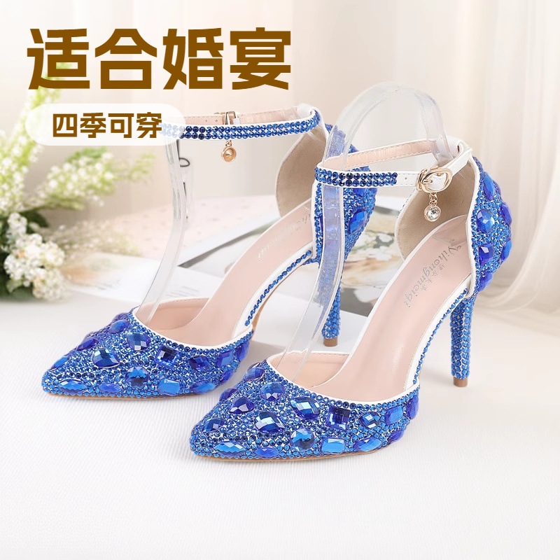 Главная страница > 2025 женские новые 12-цветные туфли на шпильке с острым носком и низким берцем, однотонные свадебные туфли на высоком каблуке с бриллиантами, дропшиппинг