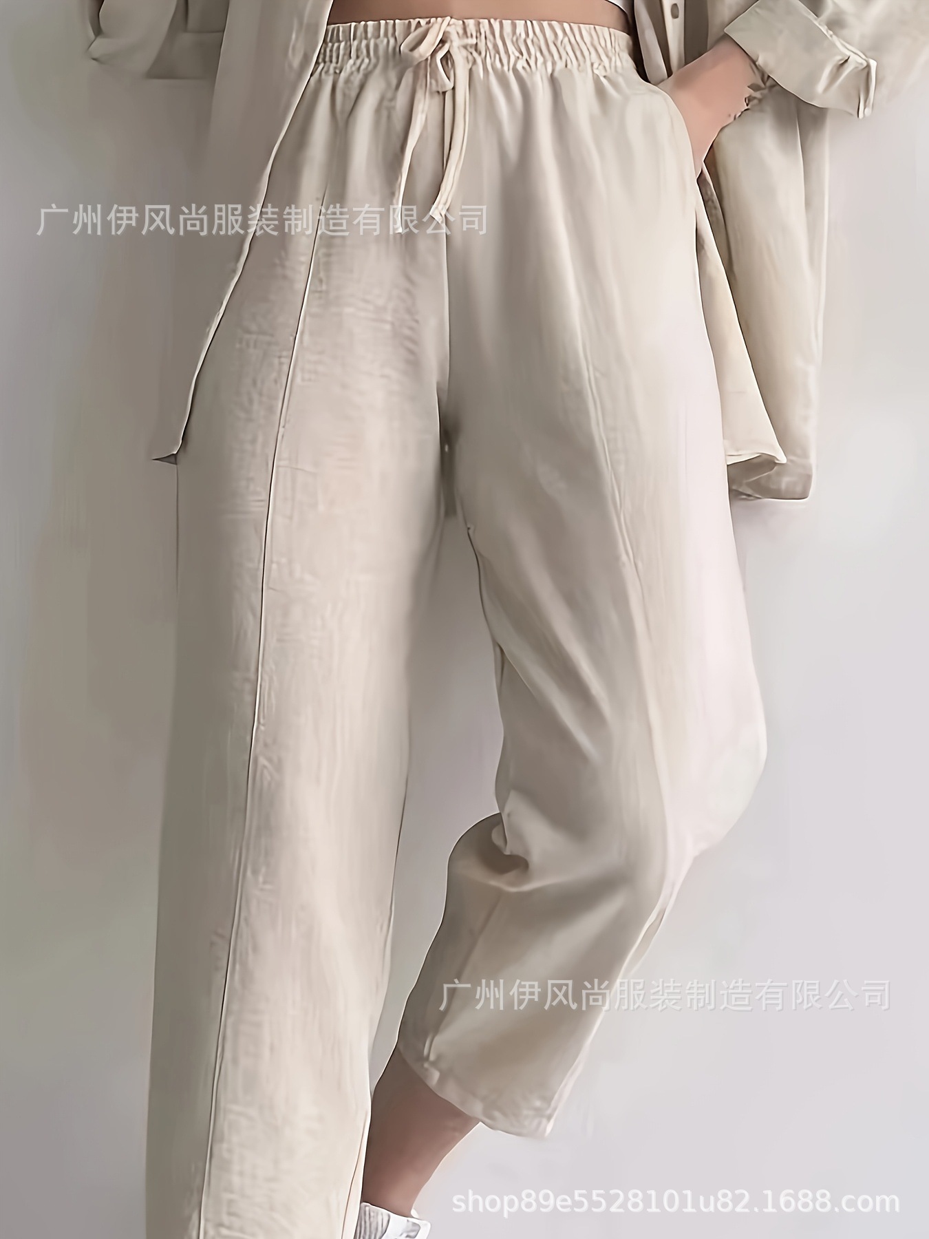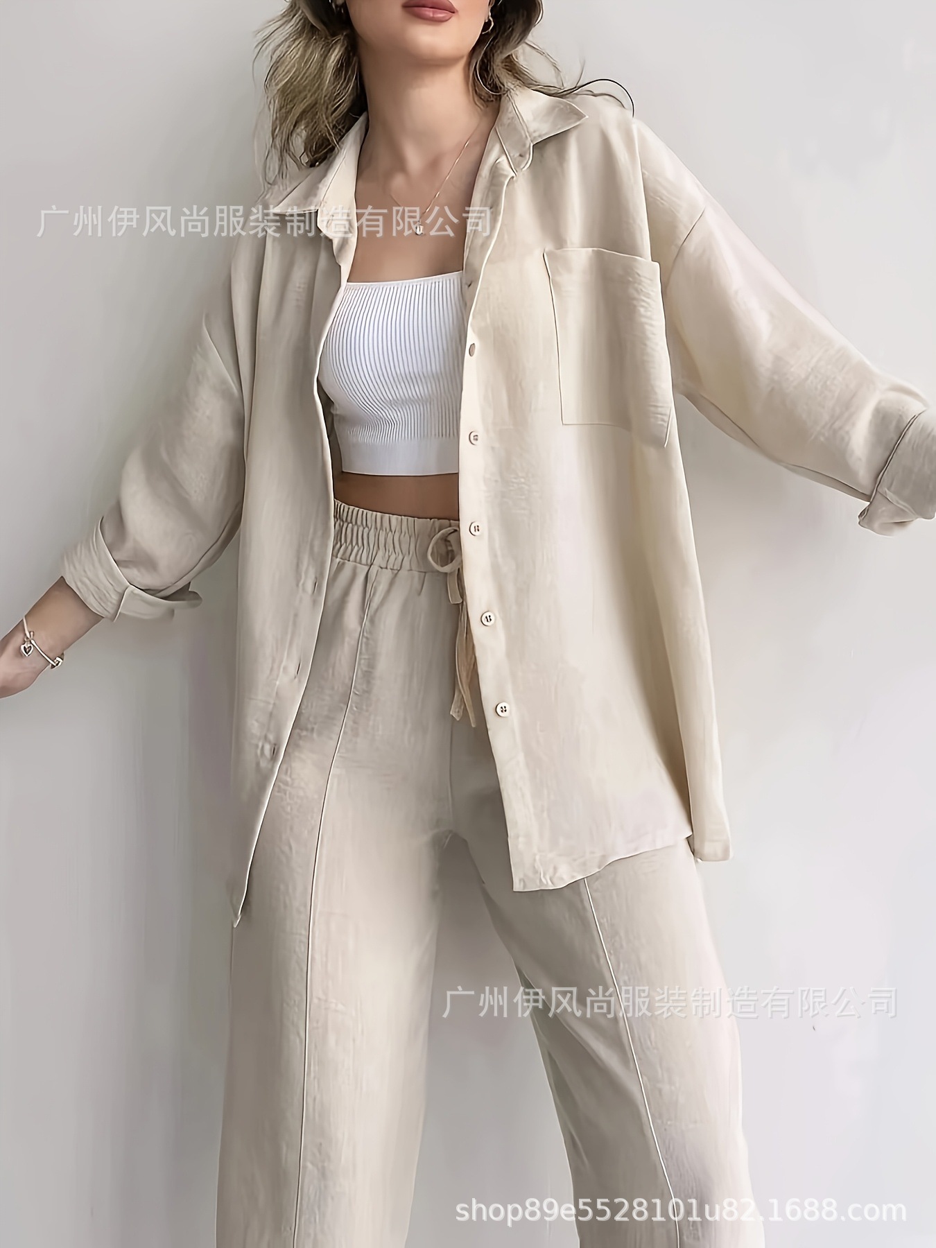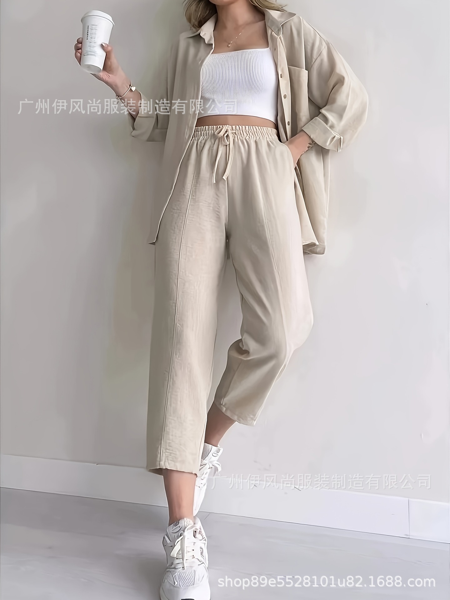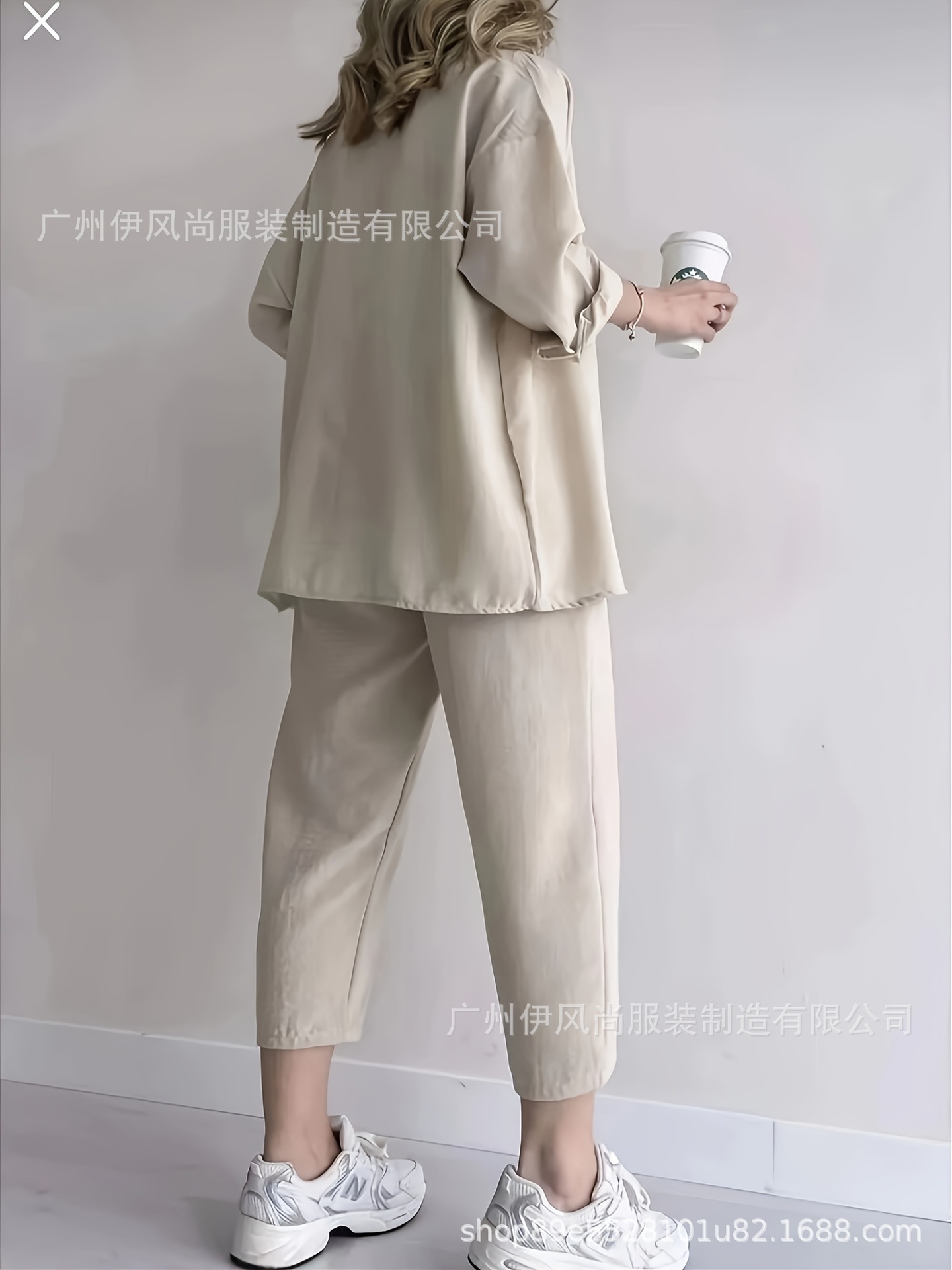 Главная страница > Костюм F009TEMU для внешней торговли, элегантный и омолаживающий, модный, летний, новый офисный комплект из рубашки и брюк для женщин 2025 года