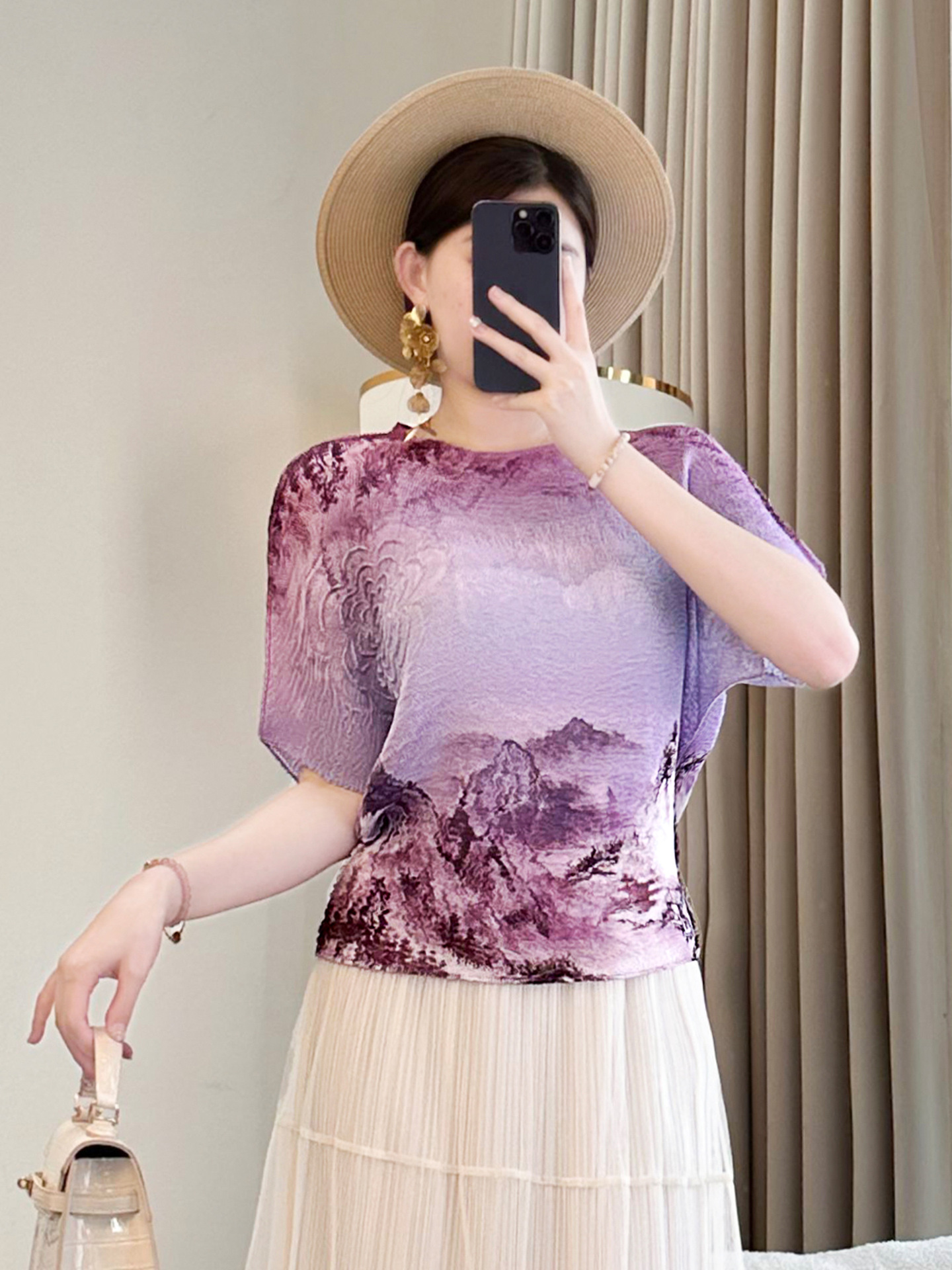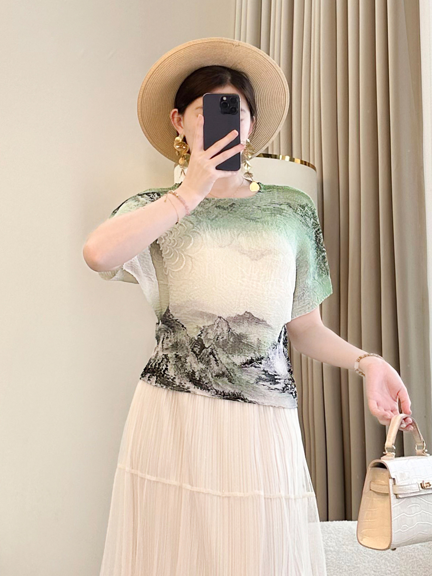 Главная страница > Футболка с чернилами и чернилами Guochao Женская короткая рукава Лето 2025 Новый дикий нижний фон иностранная мама минус топ