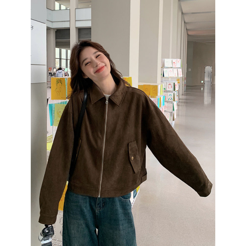 Главная страница > Цвет карри Millard имитация замшевой куртки женский 2024 осень новый американский ретро маленький короткий пиджак
