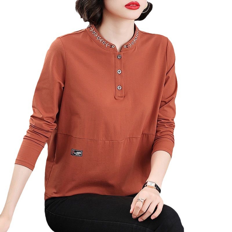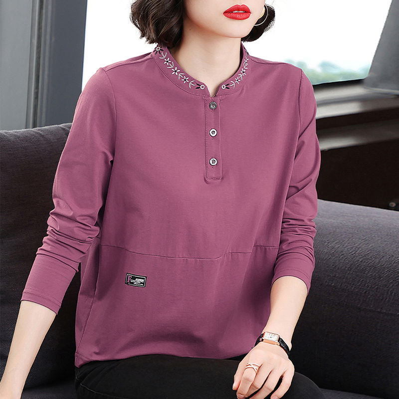 Главная страница > Весенне-осенняя новая футболка с длинным рукавом, самая популярная женская футболка с круглым вырезом и вышивкой, женская одежда среднего возраста, модная темпераментная рубашка в стиле вестерн с верхом и низом