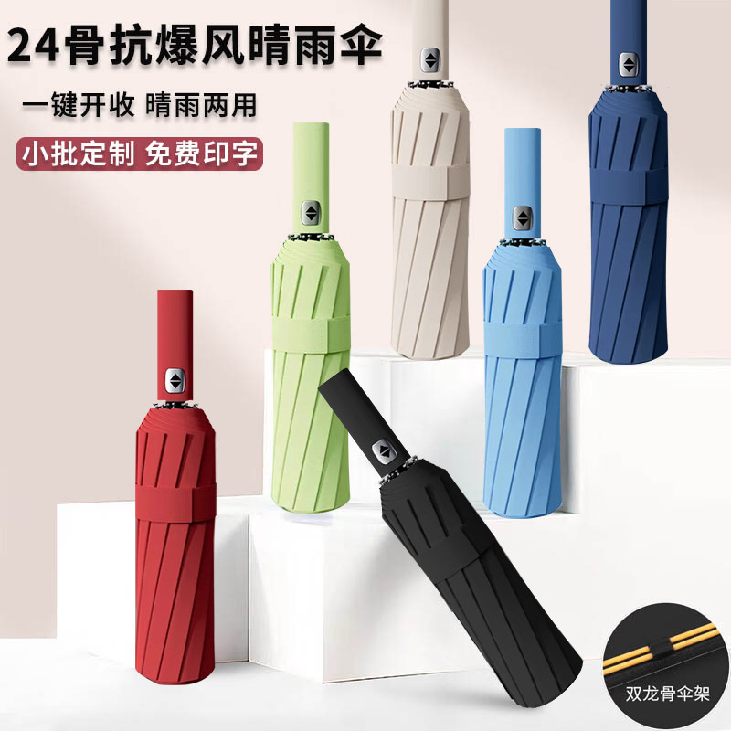 24 кость складной зонт оптовая автоматический виниловый солнцезащитный крем солнцезащитный зонт мужской дождь двойной рекламный зонт на заказ