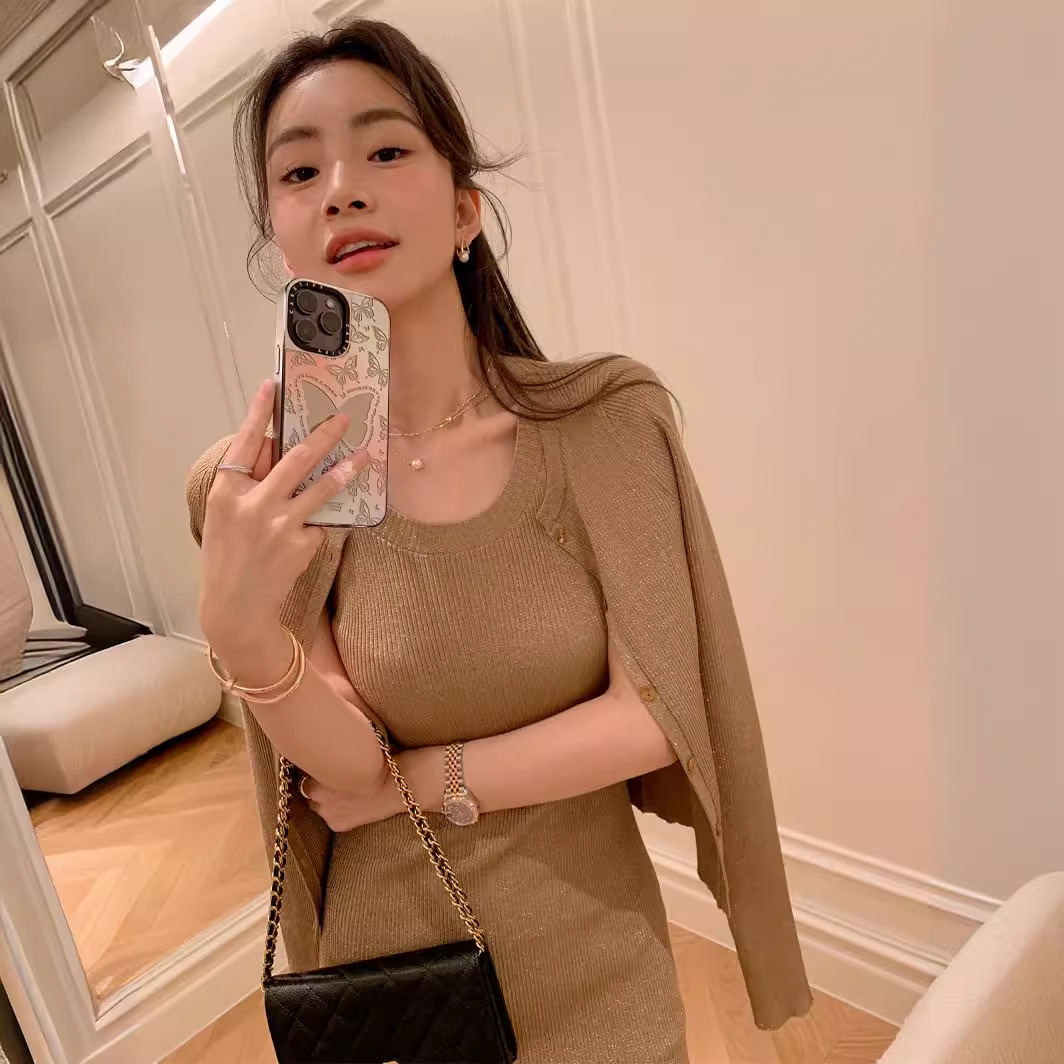 Главная страница > Комплект из трех предметов Jinyia Clothing Factory: трикотажный жилет, юбка и кардиган из новой коллекции «Сияющая галактика» весна-осень 2026