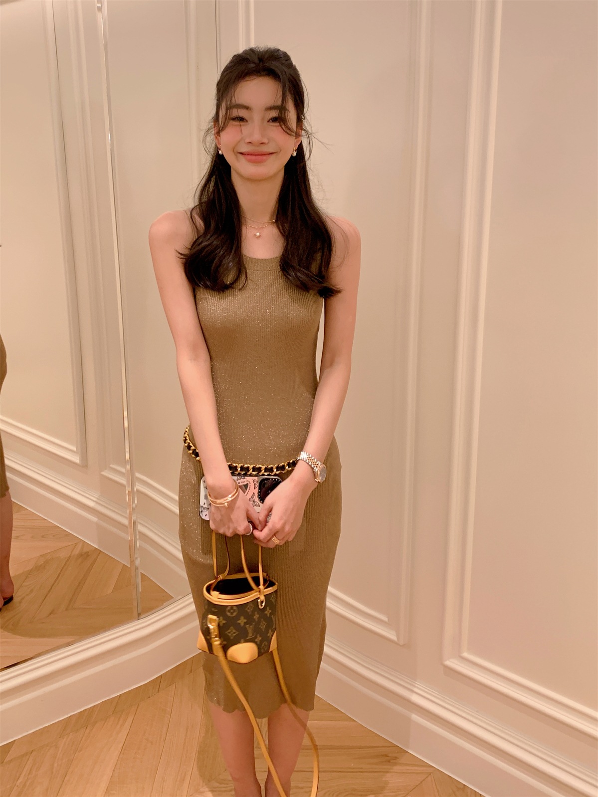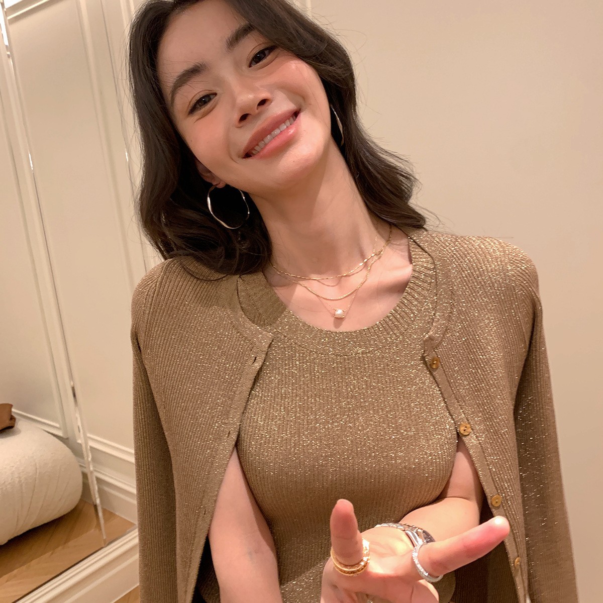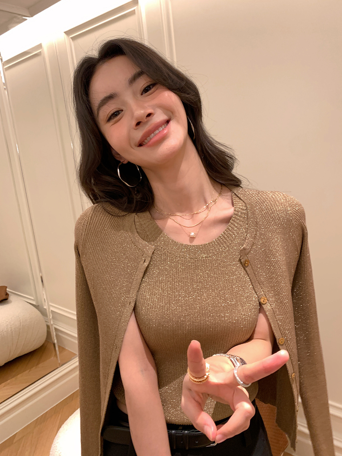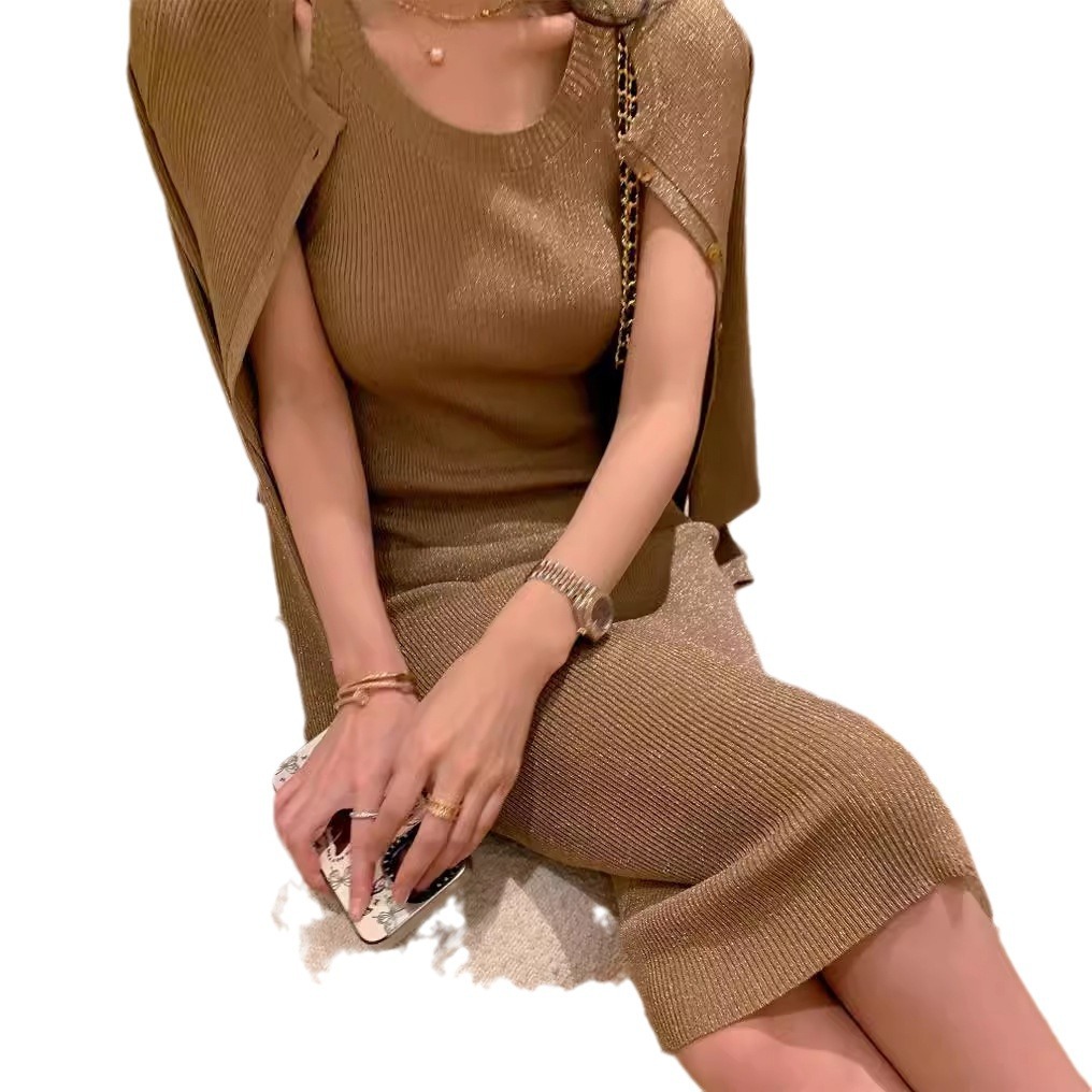 Комплект из трех предметов Jinyia Clothing Factory: трикотажный жилет, юбка и кардиган из новой коллекции «Сияющая галактика» весна-осень 2026